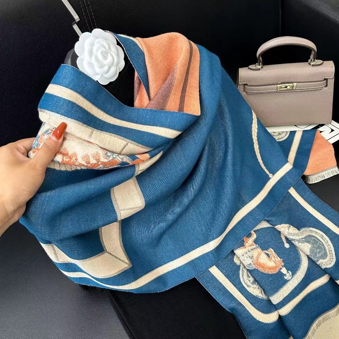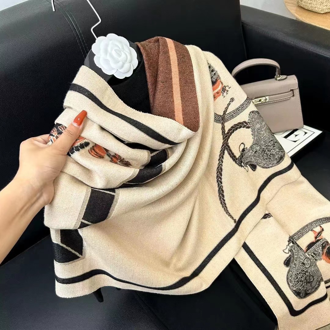 2023 new fashion double-sided scarf women's winter korean-style internet celebrity shawl cashmere-like knitted warm scarf versatile