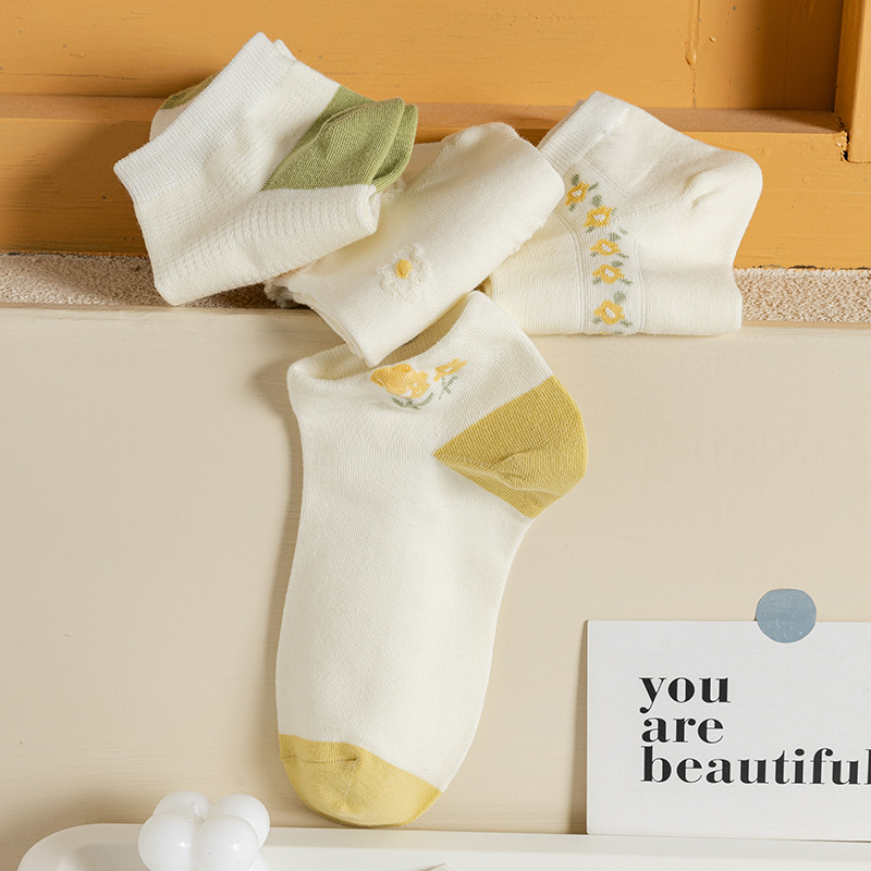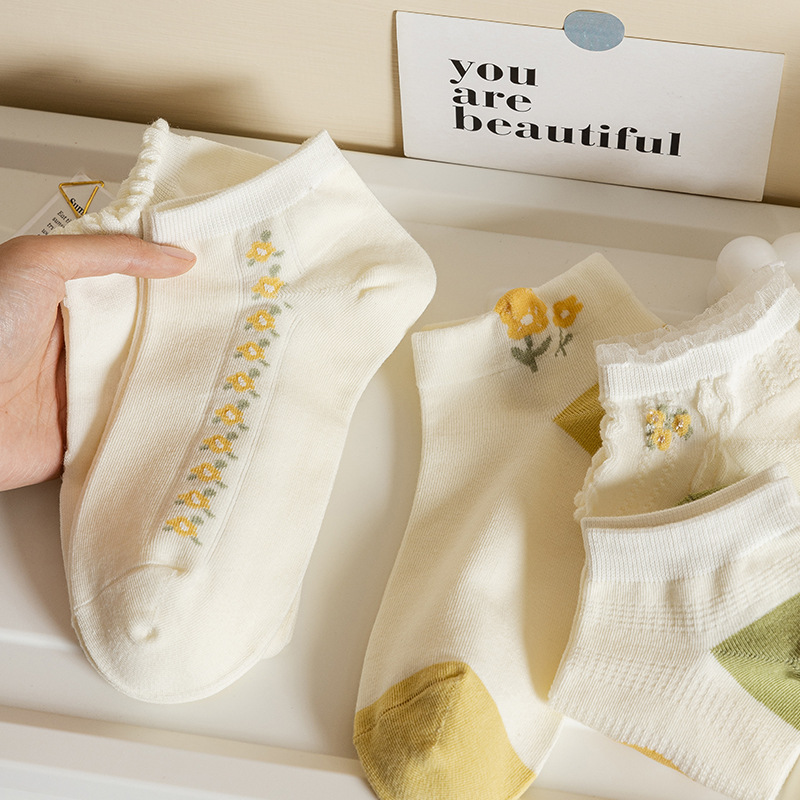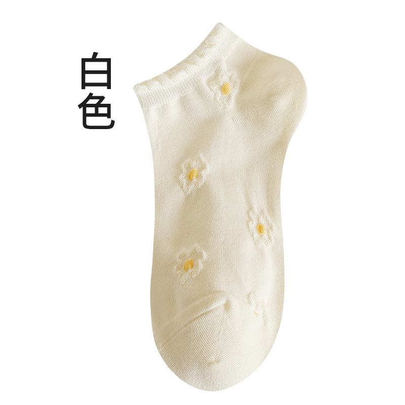 Summer Thin Socks Women's Socks Ins Trendy Pure Cotton Cute Japanese Style White Low Top Shallow Mouth Student Smiley Boat Socks