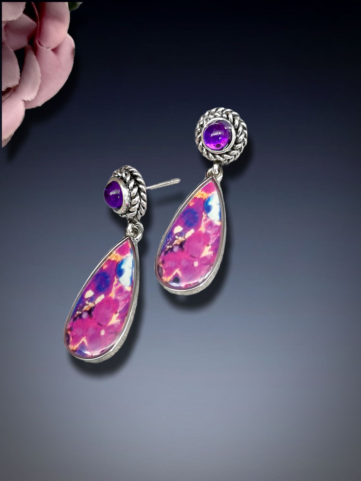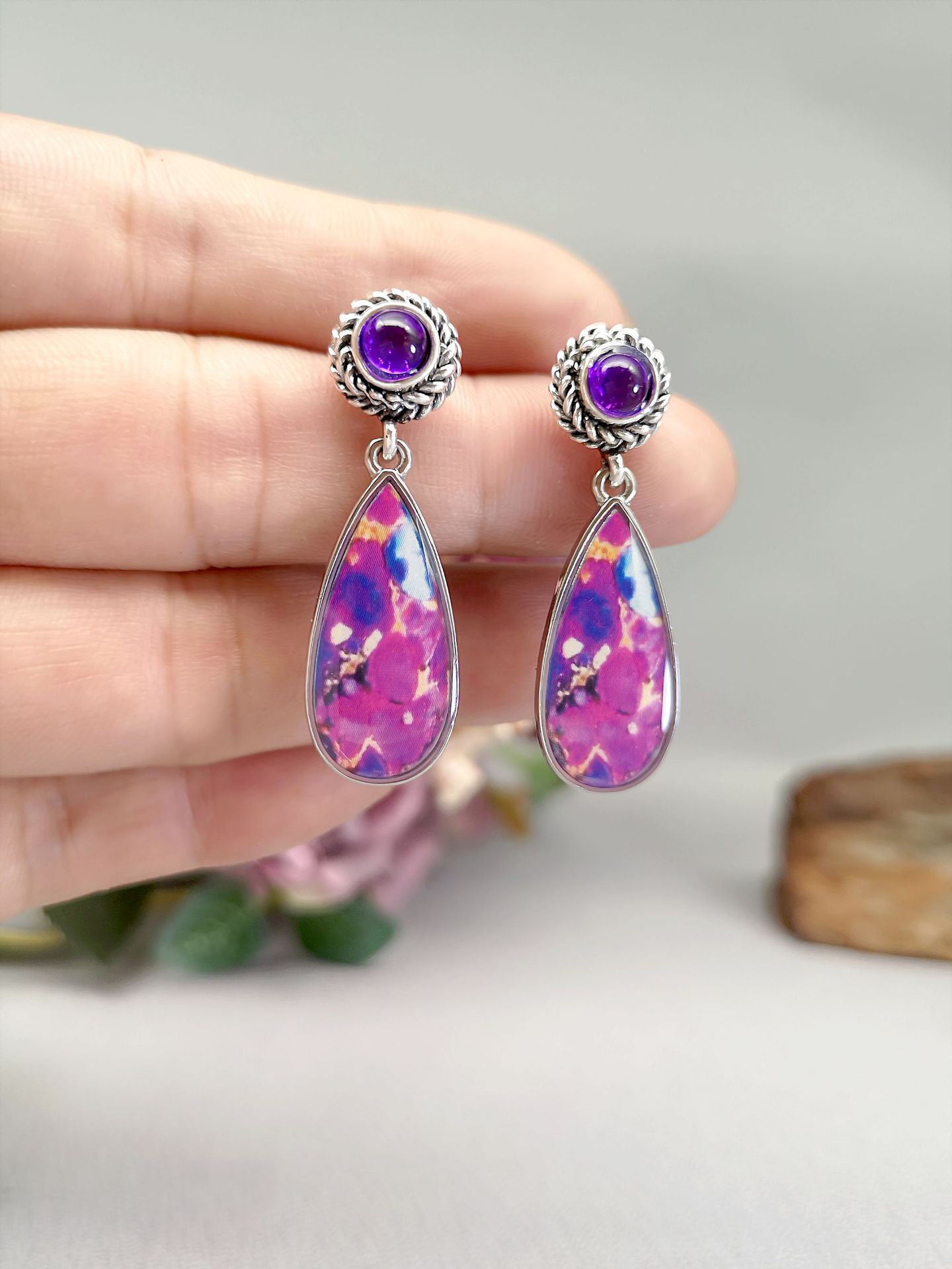 Product material color: Alloy, synthetic gemstone