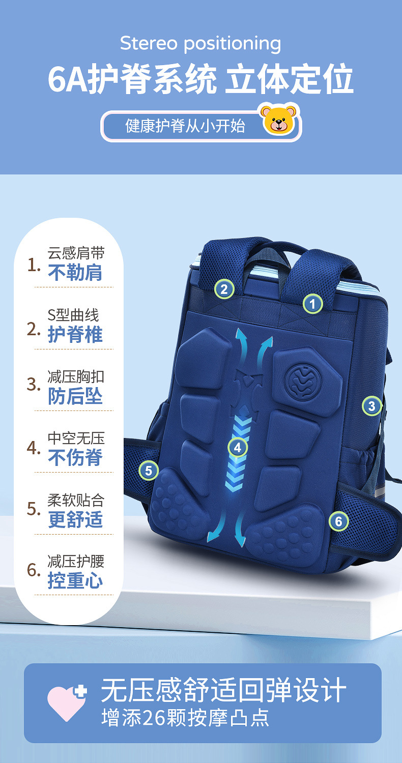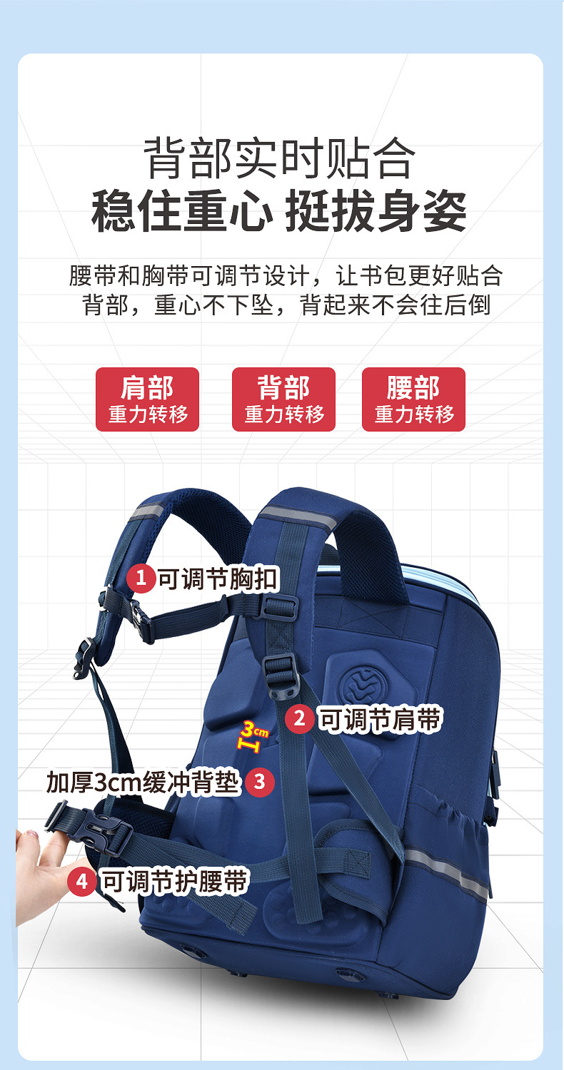 New British Space Primary School Student Schoolbag 1236 Grade Sandwich Spine Protection Waist Support Waterproof Children Backpack