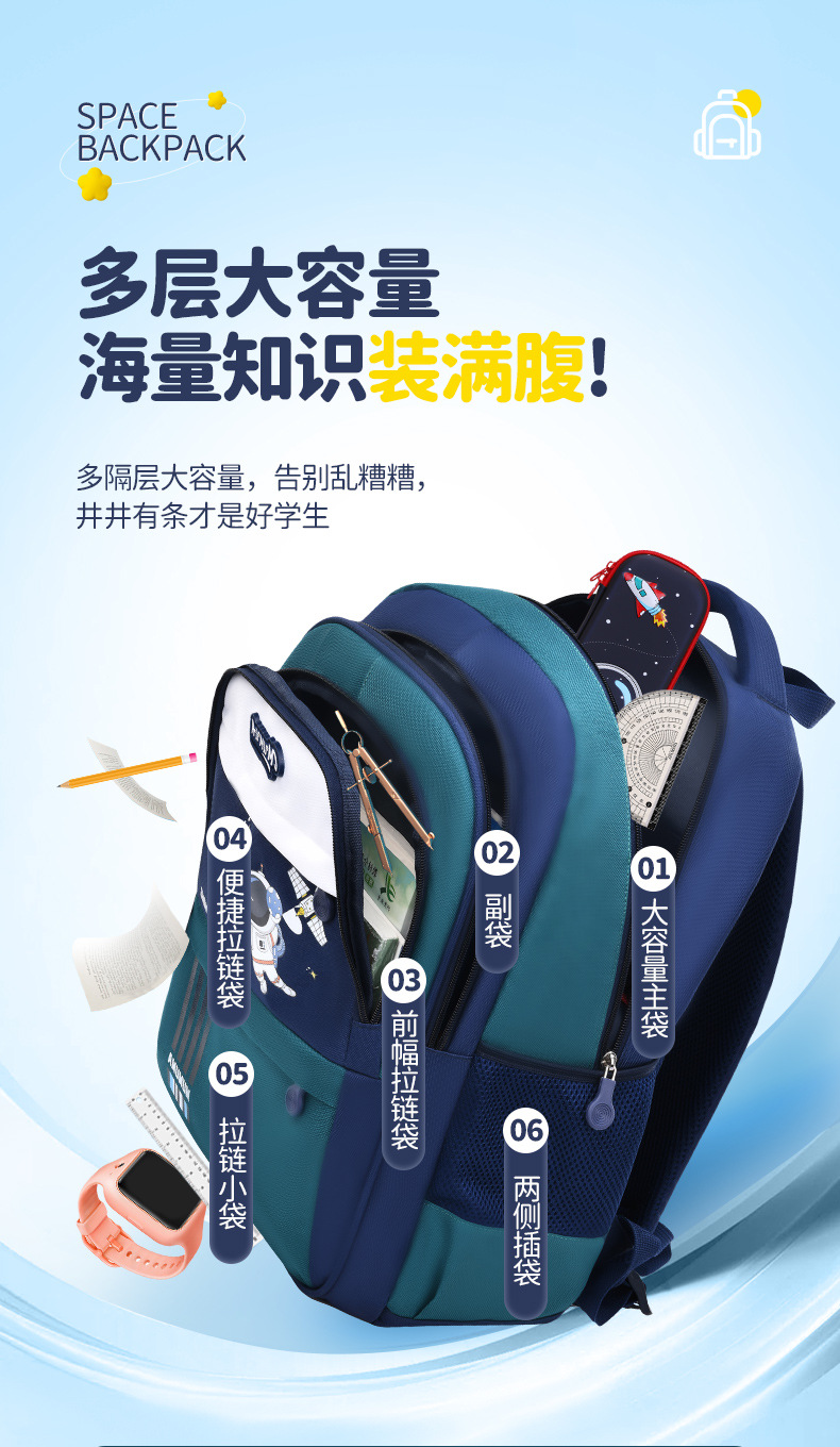 New Cartoon Primary School Student Schoolbag 236 Grade Boys and Girls Backpack Sandwich Spine Protection Burden Reduction Waterproof