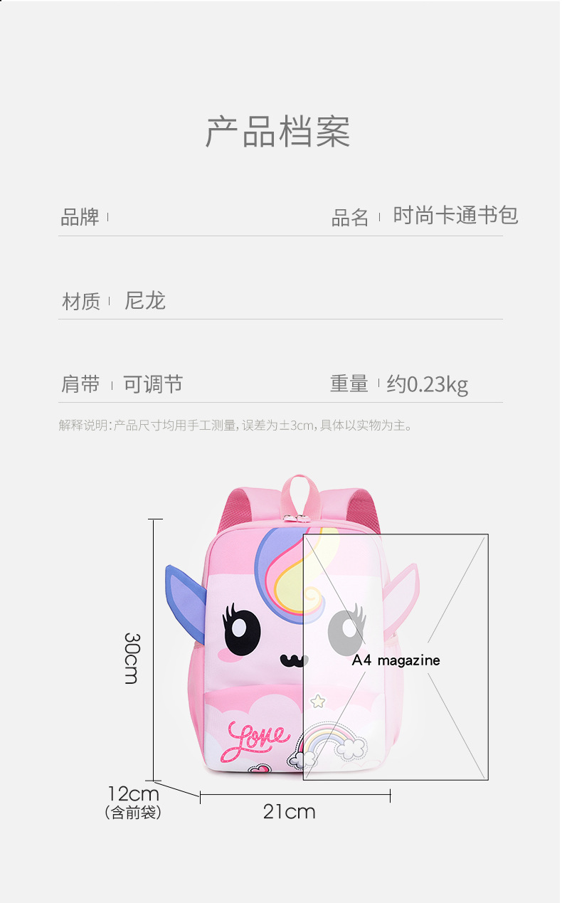 New Children's Schoolbag 3-6 Years Old Kindergarten Advanced, Intermediate and Elementary Classes Backpack Cute Cartoon Boys and Girls Backpack Wholesale