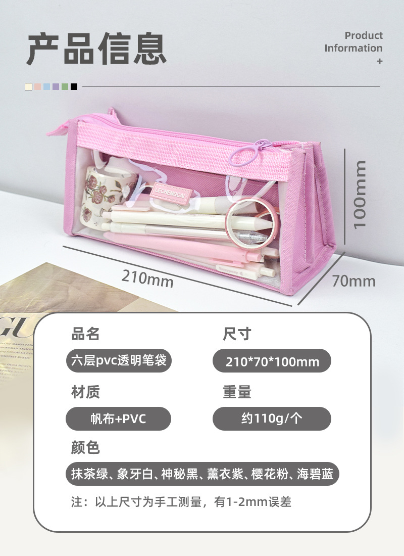 Korean Style Pencil Case 6-Layer Large Capacity Transparent Ins Style Good-looking Girls 2023 New Popular Internet Celebrity Stationery Box