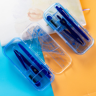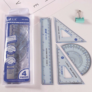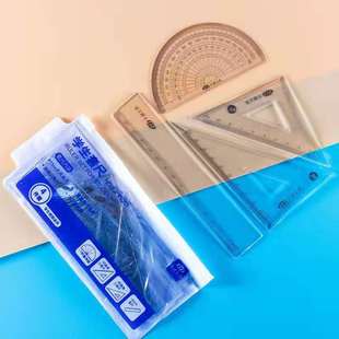 Cartoon Student Ruler Set Four-Piece Set Simple Transparent 20cm Straight Ruler Student Plastic Learning Stationery Wholesale