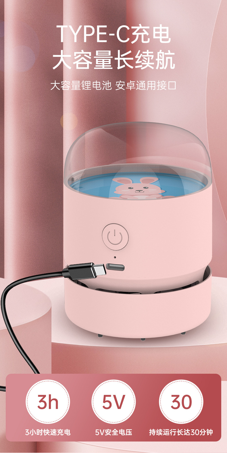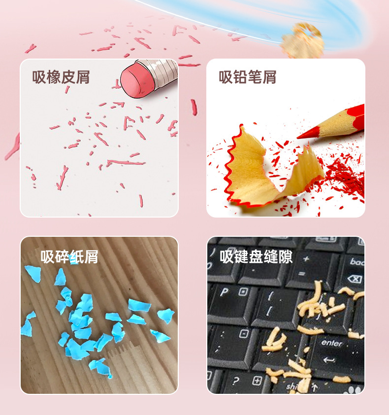 New Desktop Vacuum Cleaner Rechargeable Elementary School Student Eraser Chip Machine Large Suction Mini Pencil Chip Cleaning Gadget