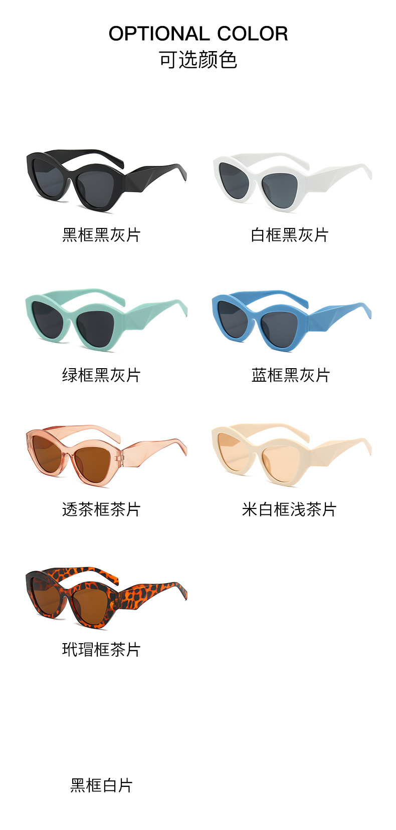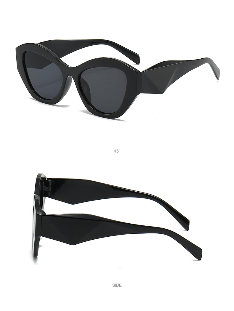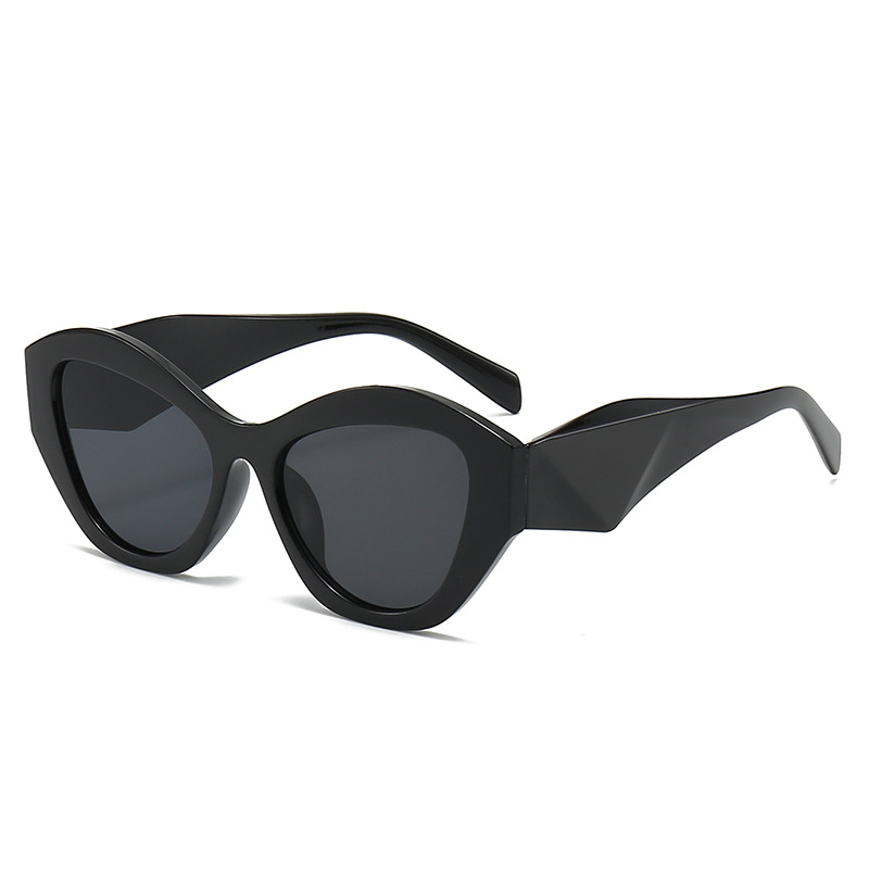 Retro Cat Eye Irregular Sunglasses UV Protection Male and Female Personality Fashion European and American Style Black Frame Sunglasses to Make round Face Thin-Looked