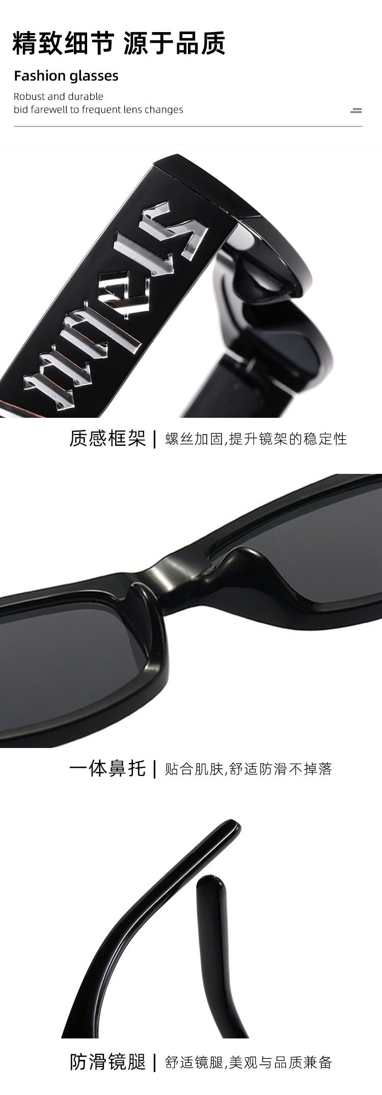 Black Frame Punk Letter Sunglasses New Trendy Ins Europe and America Cross Border Hip Hop Style High Sense Sunglasses for Small Face Women