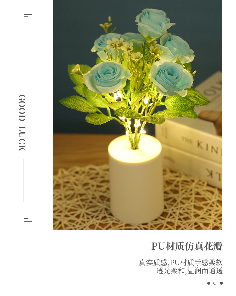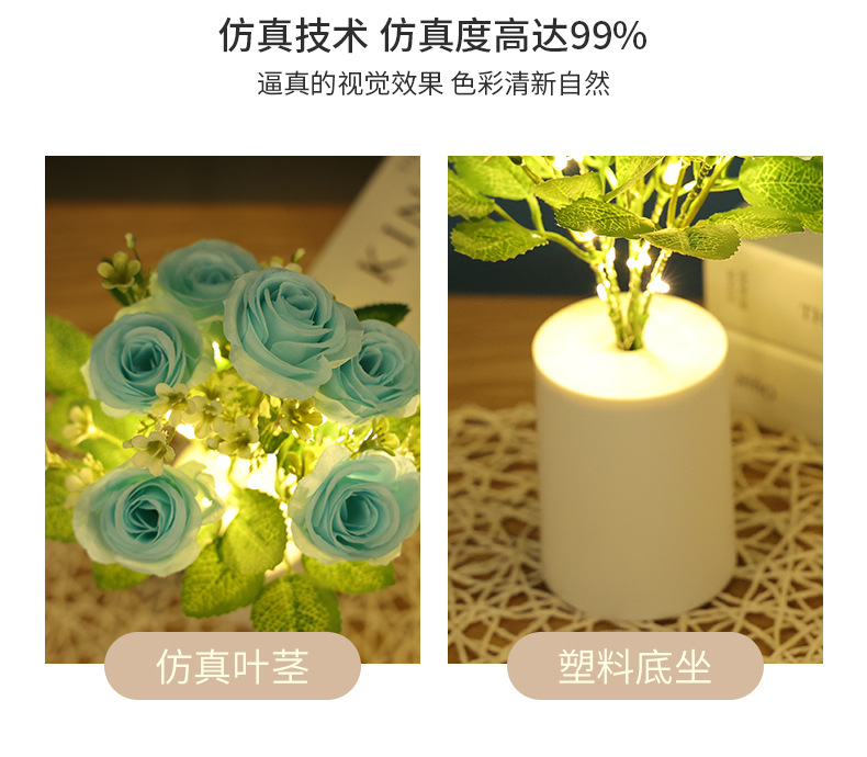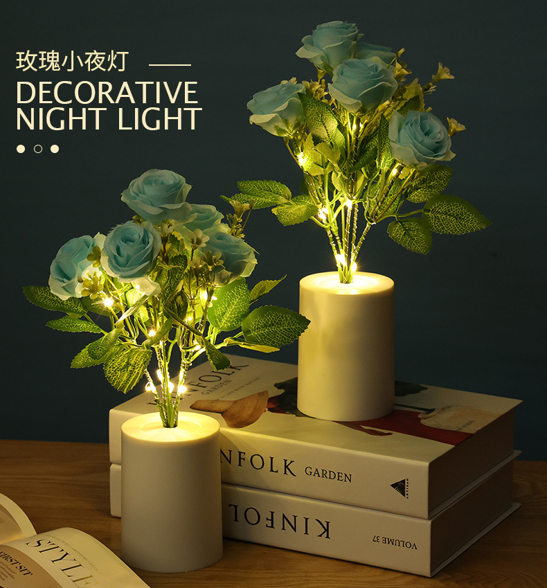 rose small night lamp creative simulation bouquet night light bedroom bedside lamp ambience light home decoration desktop decoration