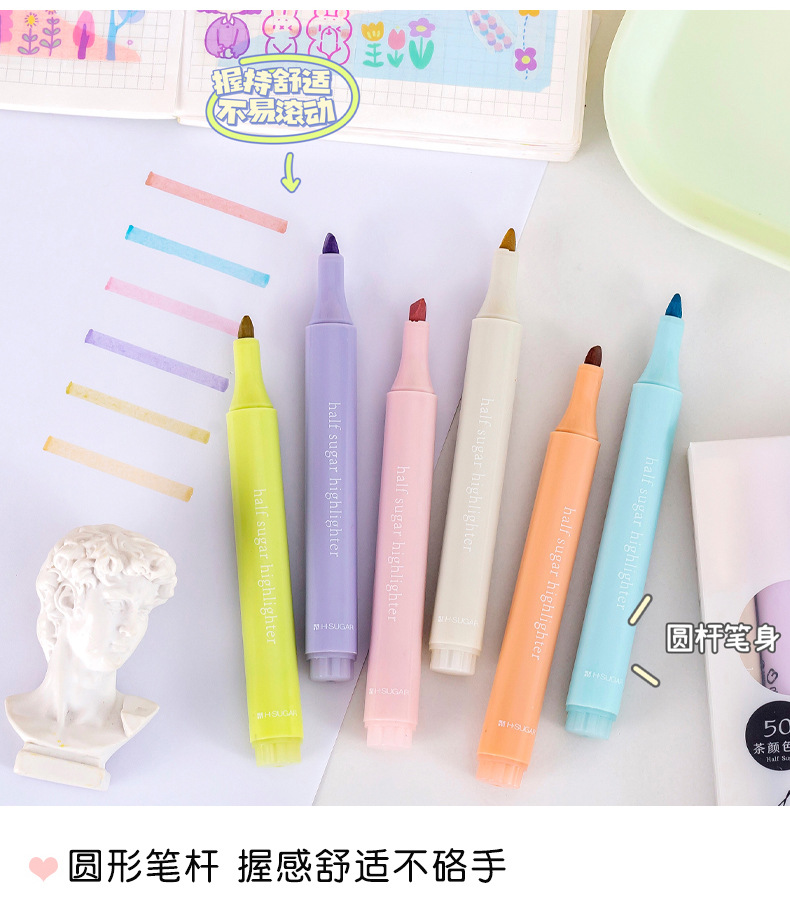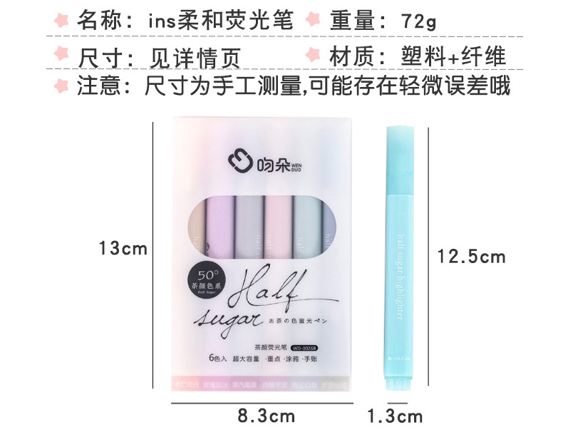Light Color Eye Protection Fluorescent Pen Marker Student Good-looking Marking Pen Large Capacity Oblique Head Boxed Girl Journal Pen