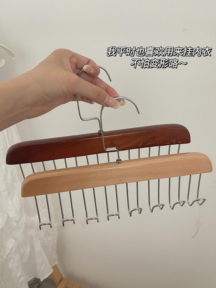 Dormitory Clothing Store Solid Wood Clothes Hanger Multi-Functional Underwear Vest Tie Hook Wooden Sling Hanger Wholesale