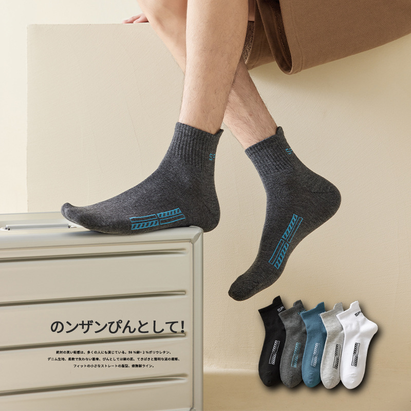 socks male black and white business men's socks spring/summer thin absorb sweat sports ins trendy solid color mesh breathable men's socks