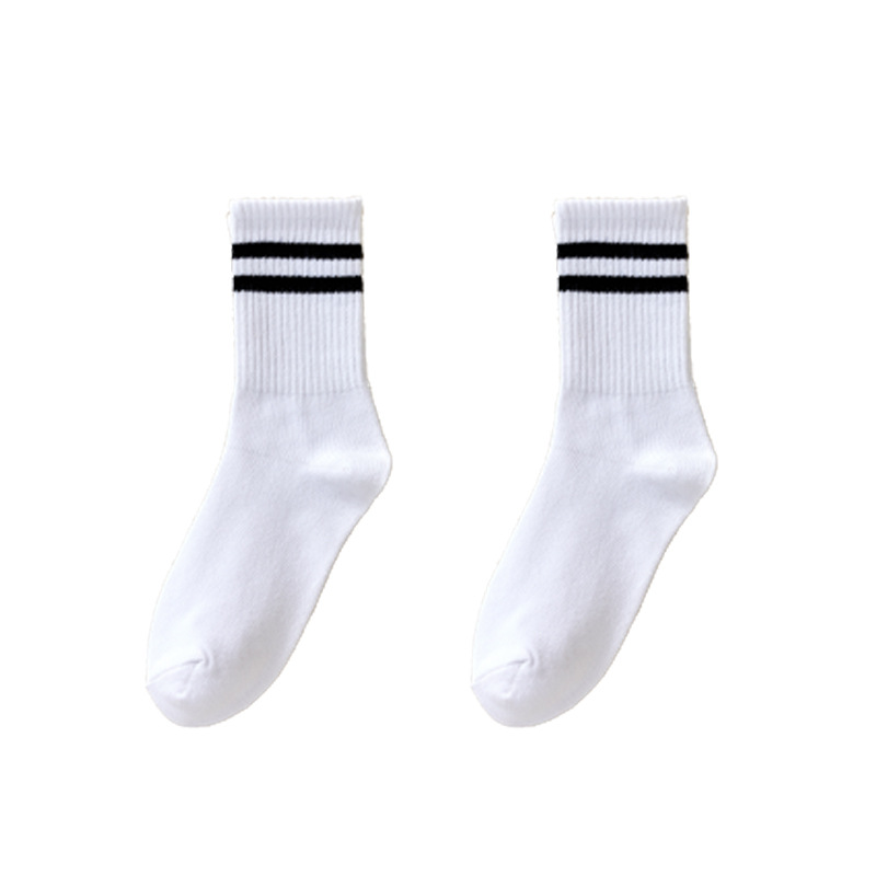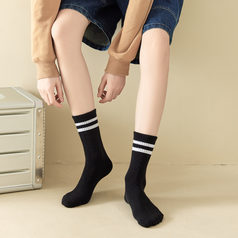 Women's Socks Autumn and Winter Mid-Calf Length Socks Women's Japanese Solid Color Bunching Socks Ins Trendy Drawstring Athletic Socks Two Bars Stockings