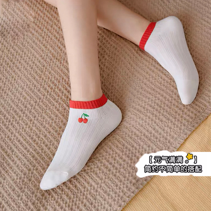 Socks Women's Socks Shallow Mouth Spring and Summer Thin Women's Boat Socks Fruit Japanese Cute Fresh Low Cut Short Tube Women's Socks
