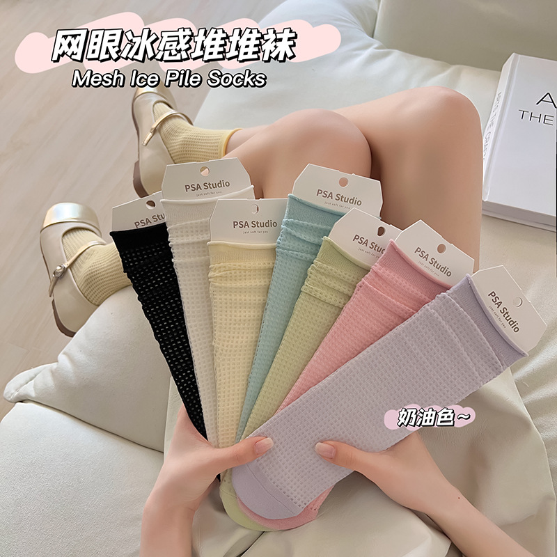 Women's Socks Summer Bunching Socks Cotton Summer Thin Black Hole Socks with Loafers White Boneless Maternity Socks