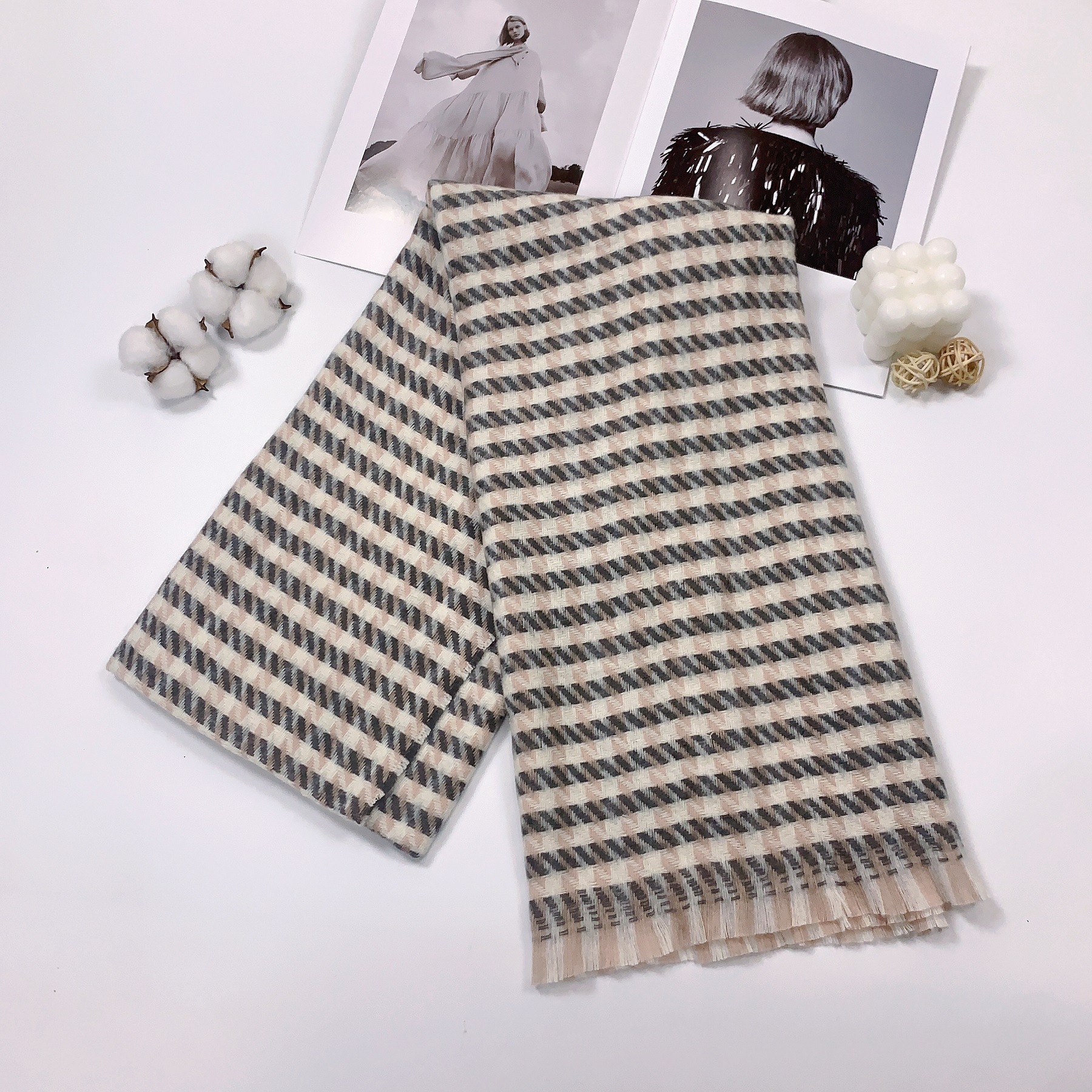 Checked Fall and Winter Thickened Tassel Scarf