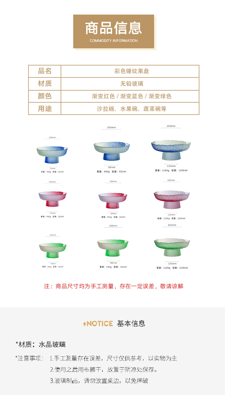 hammered glass plate household multi-layer color dried fruit plate set living room storage ornaments snack plate candy plate