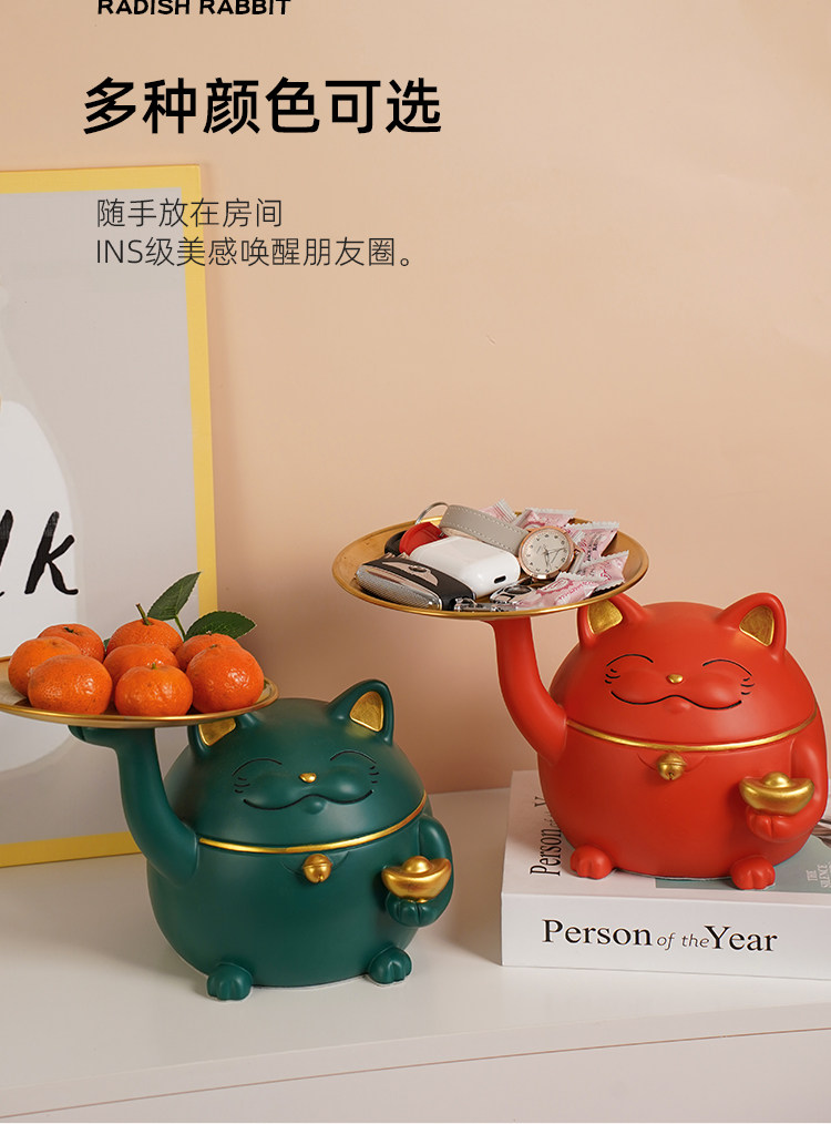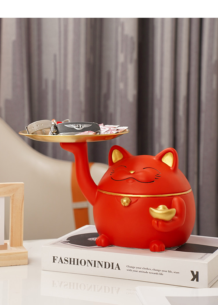 lucky cat tray red
