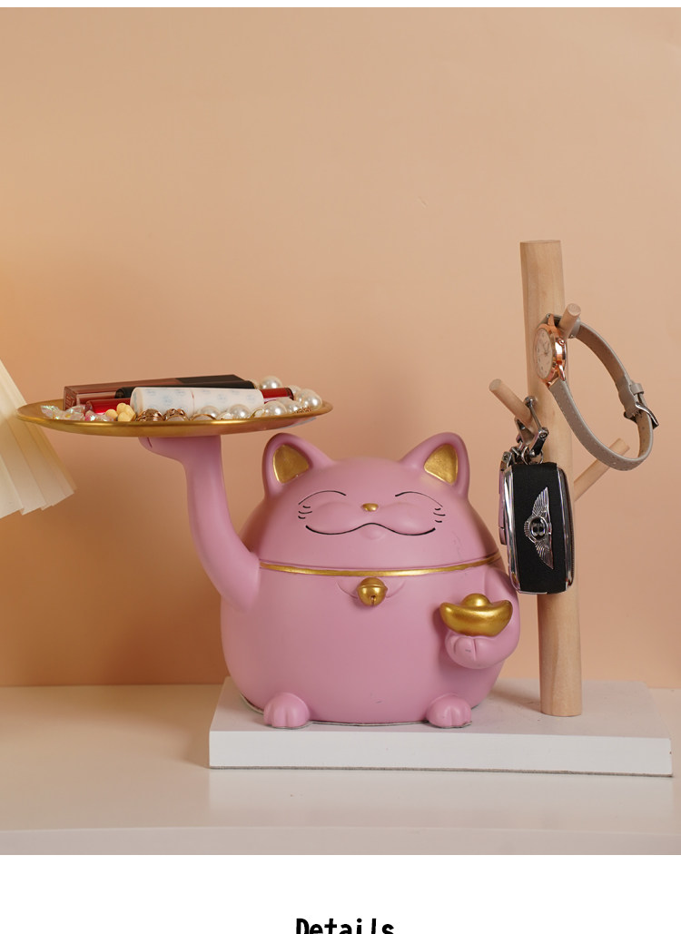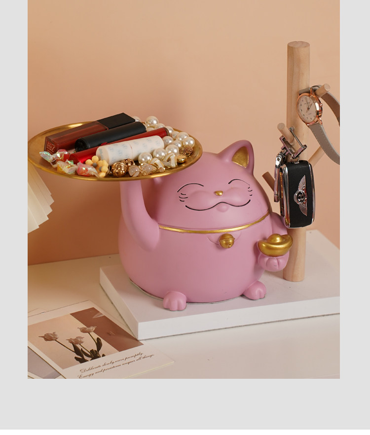lucky cat tray pink