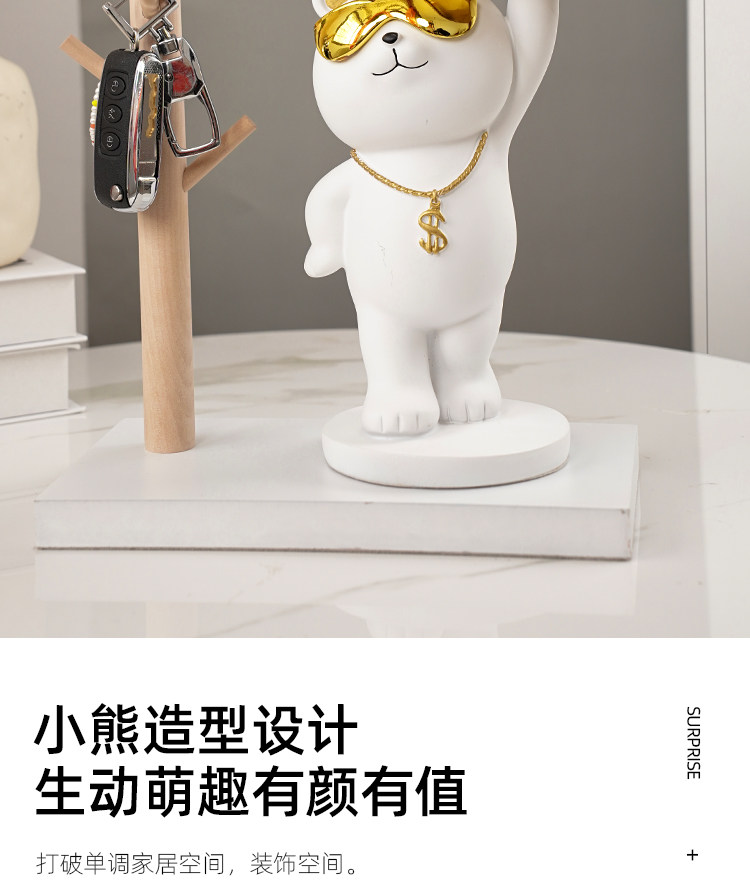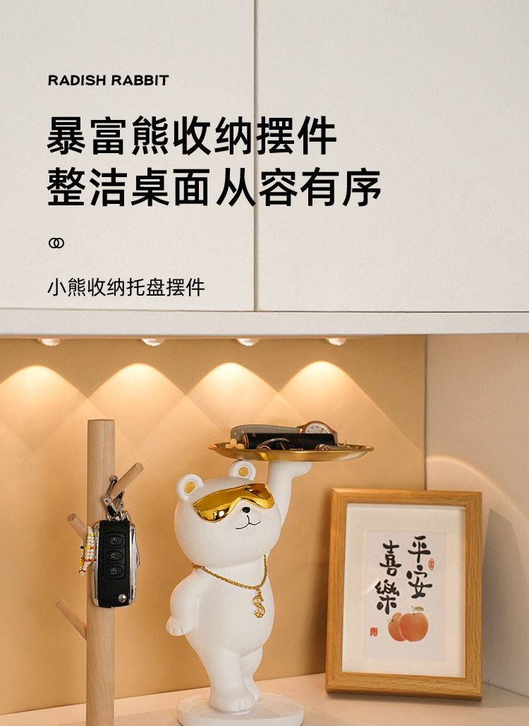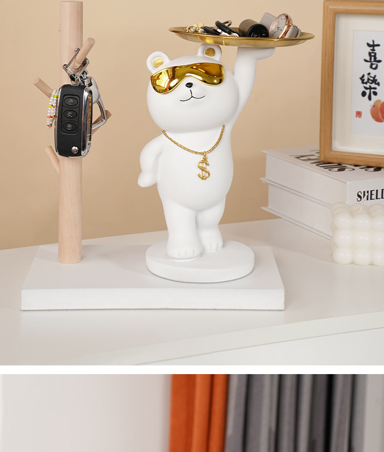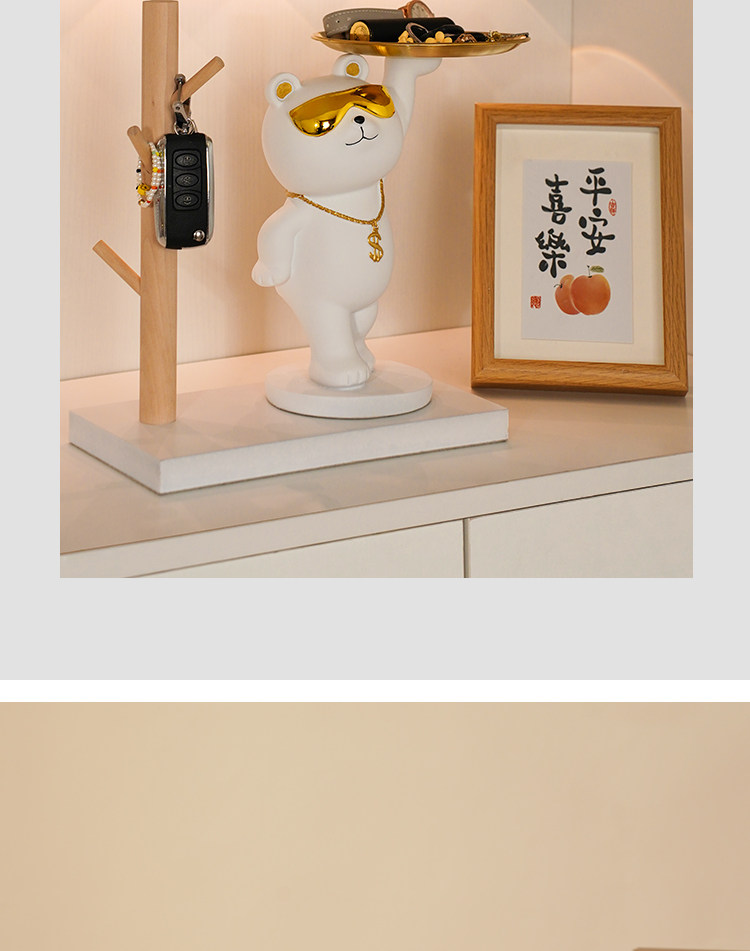 rich bear ornaments gathering white + wooden frame