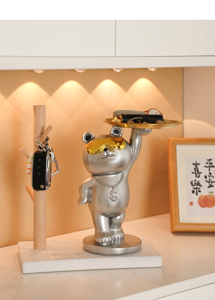 rich bear ornaments gathering silver + wooden frame