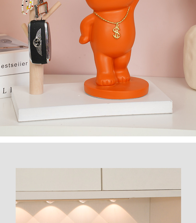 rich bear ornaments gathering orange + wooden frame