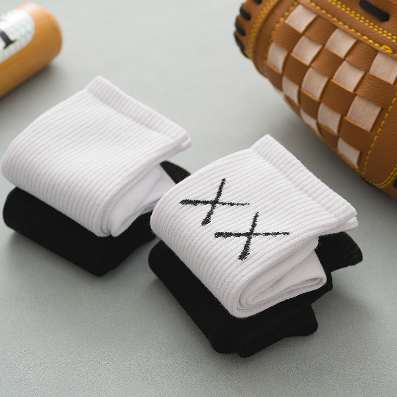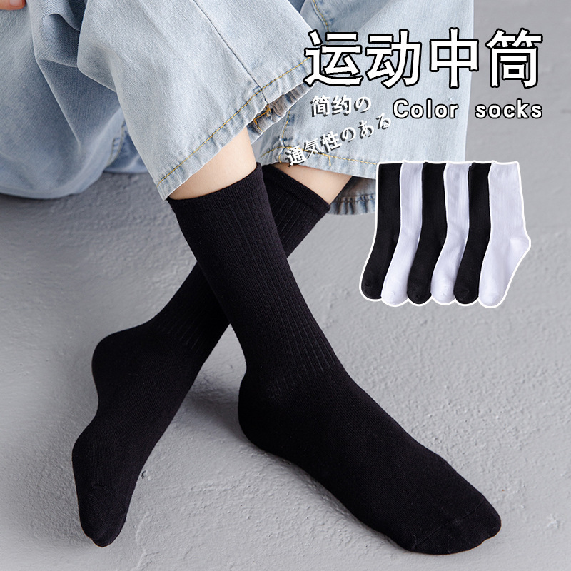 Black Socks Female Autumn and Winter Mid-Calf Length Socks Female Ins Trendy White Athletic Socks Solid Color Stockings Female Couple Stockings Male