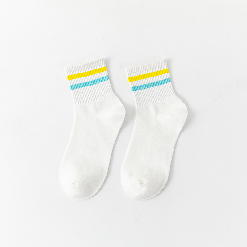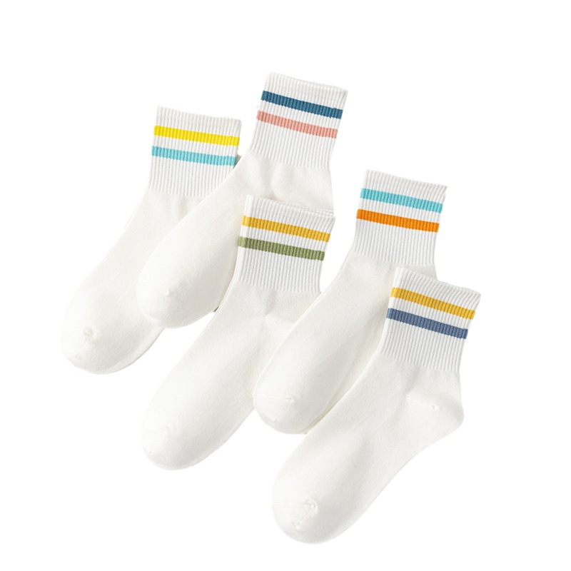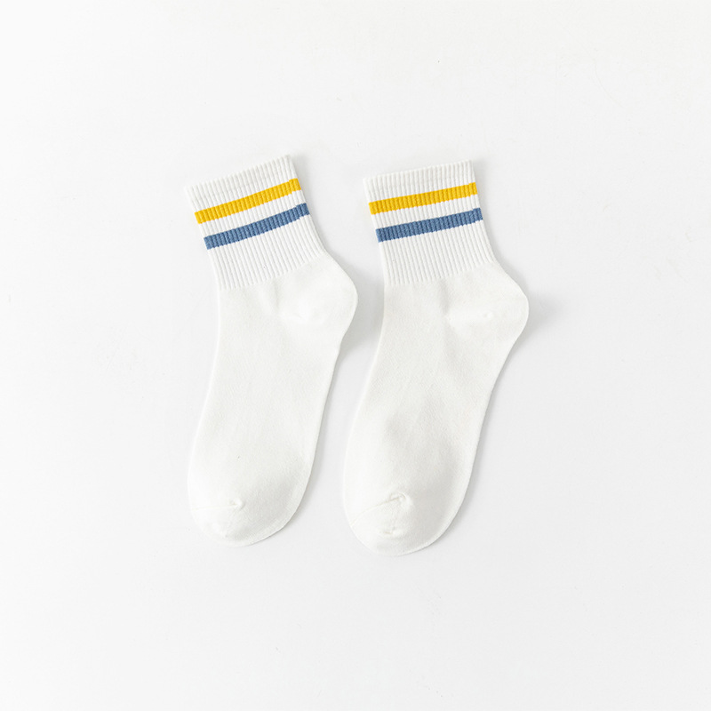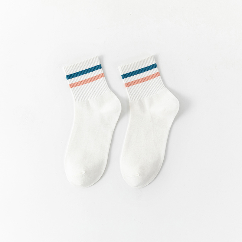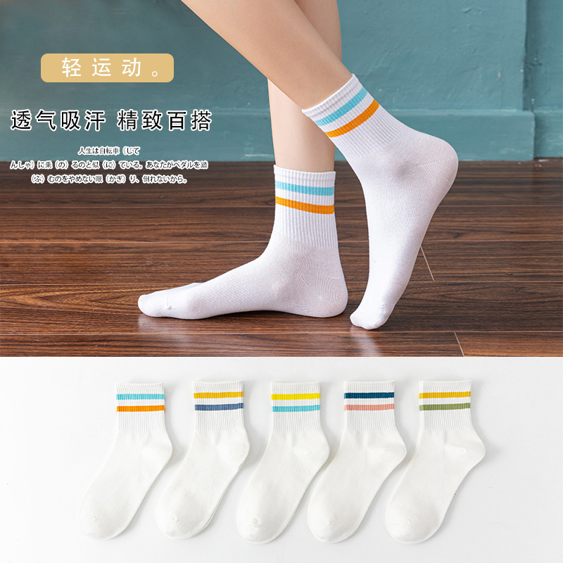 White Socks for Women Summer Two-Bar Striped Mid-Calf Length Ins Trendy Japanese College Style Student Socks All-Matching Four Seasons Socks