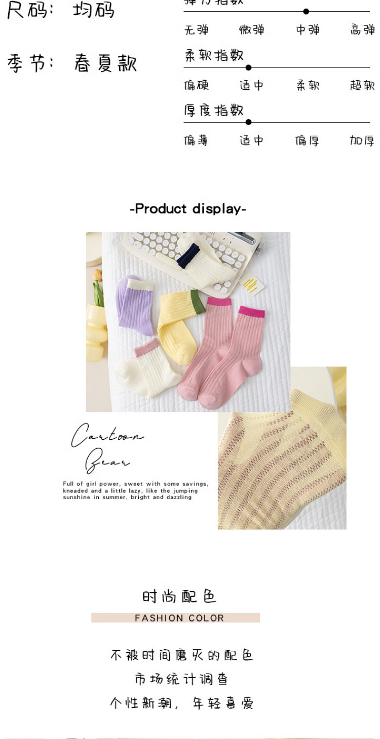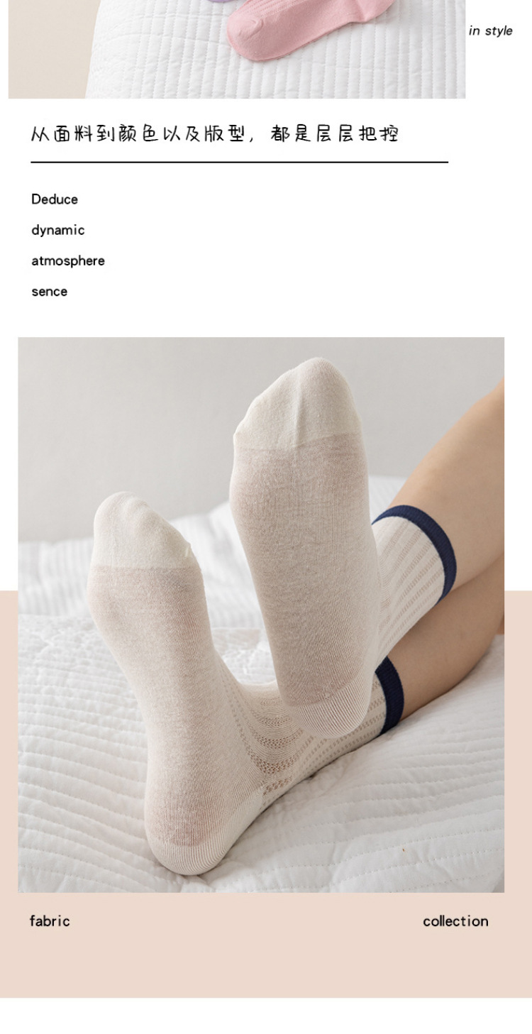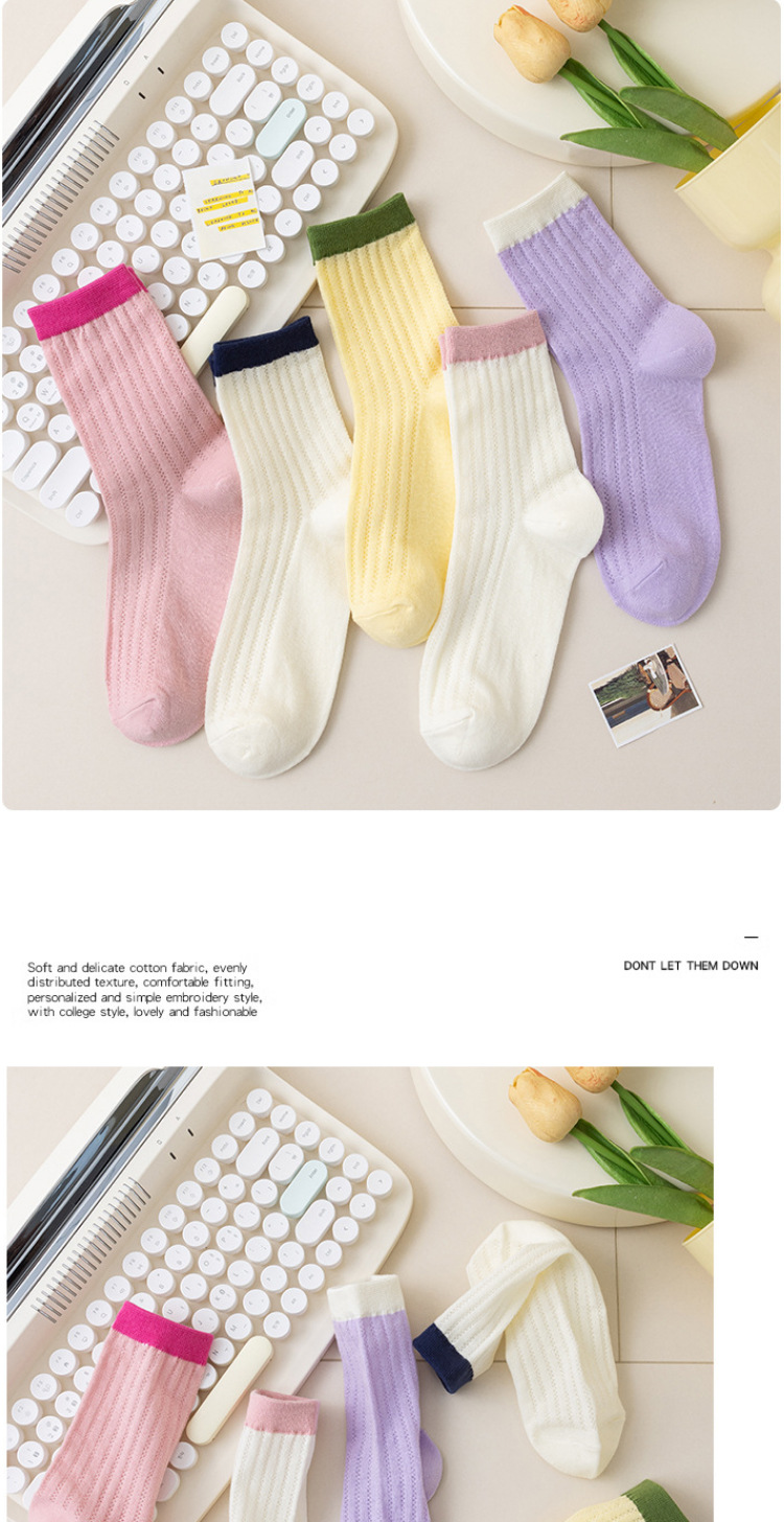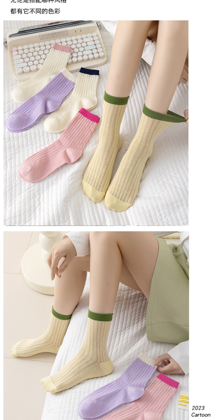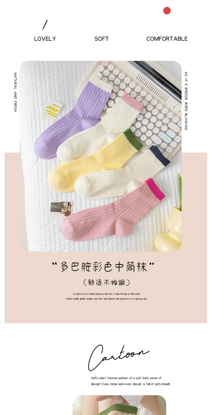 Women's Socks Japanese Style Thin Tube Socks Contrast Color Candy Color Bunching Socks Vertical Stripes Versatile Spring and Autumn Stockings Women