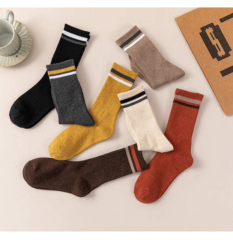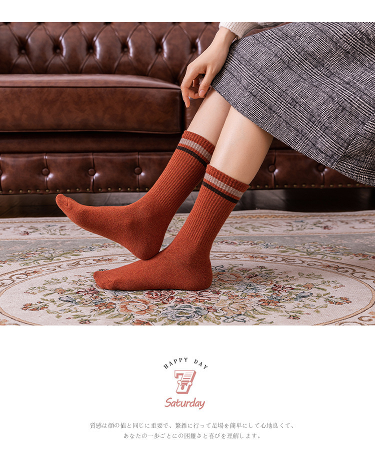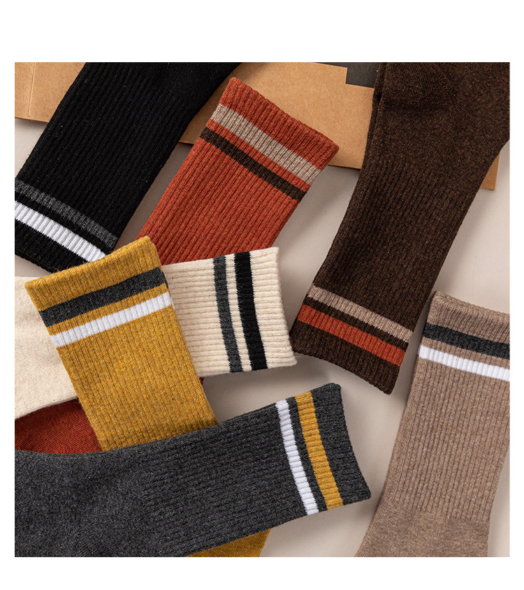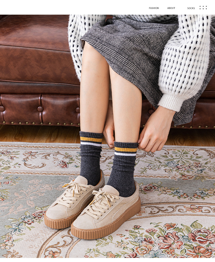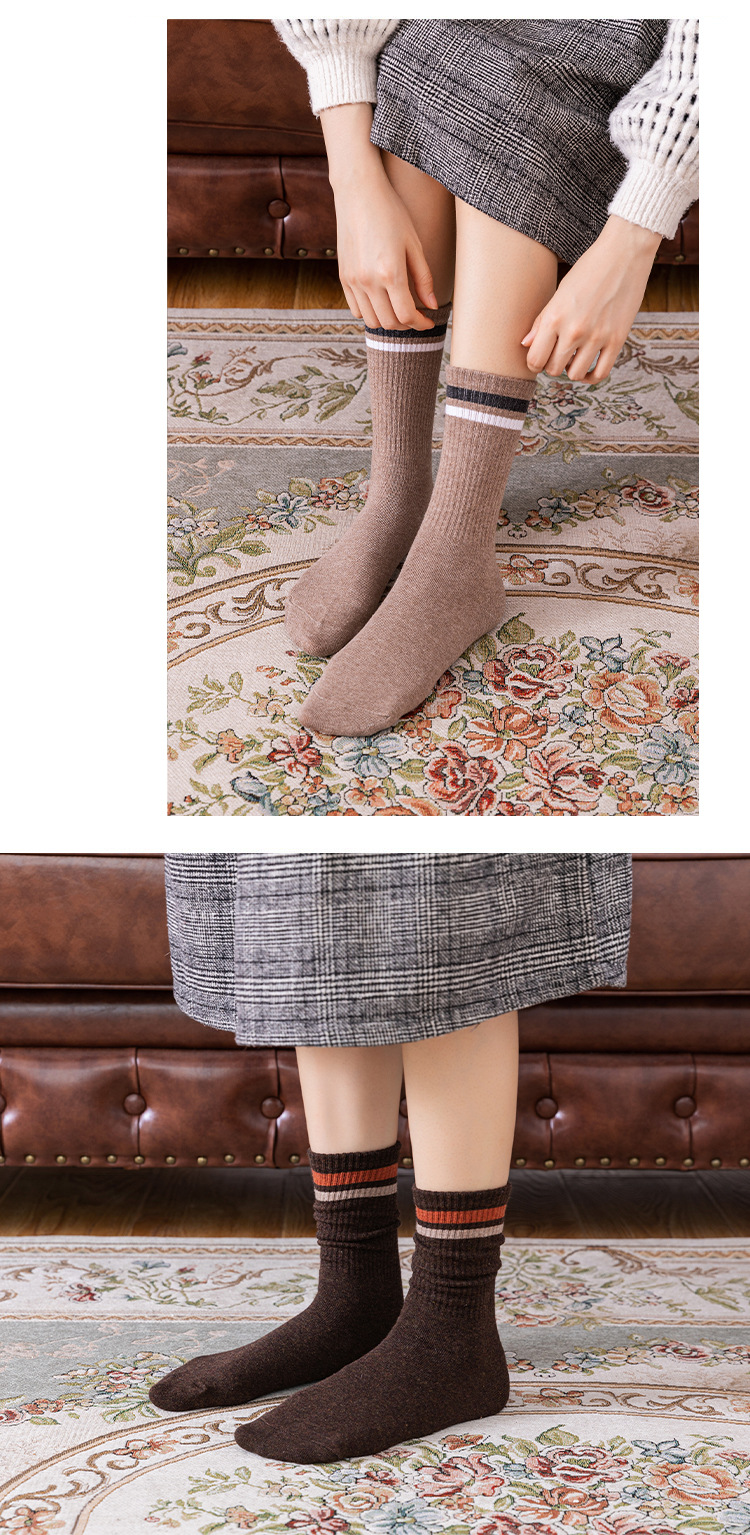 White Socks for Women Autumn and Winter New Tube Socks Parallel Bars Height Screw Type Bunching Socks Versatile Wear-Resistant Women's Striped Socks