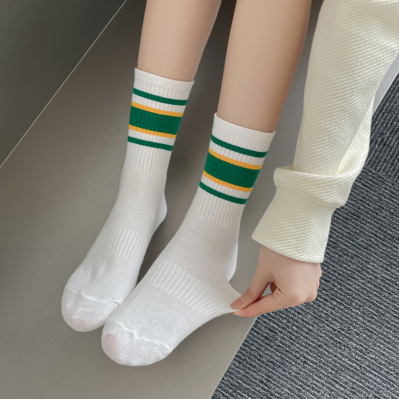 Women's Ins Fashionable Thin Striped Light Sports Net Red Mid-Calf Long Socks Street with White Shoes Shark Pants