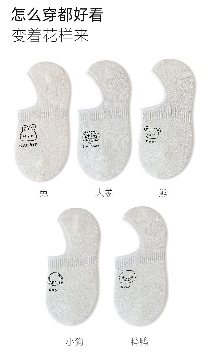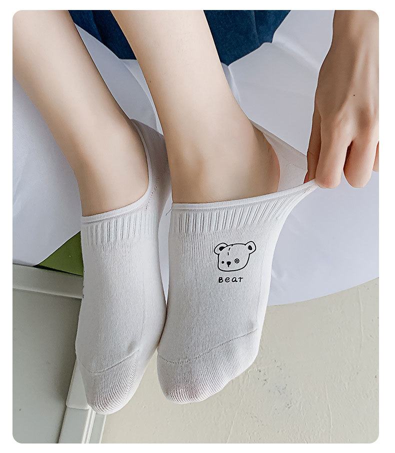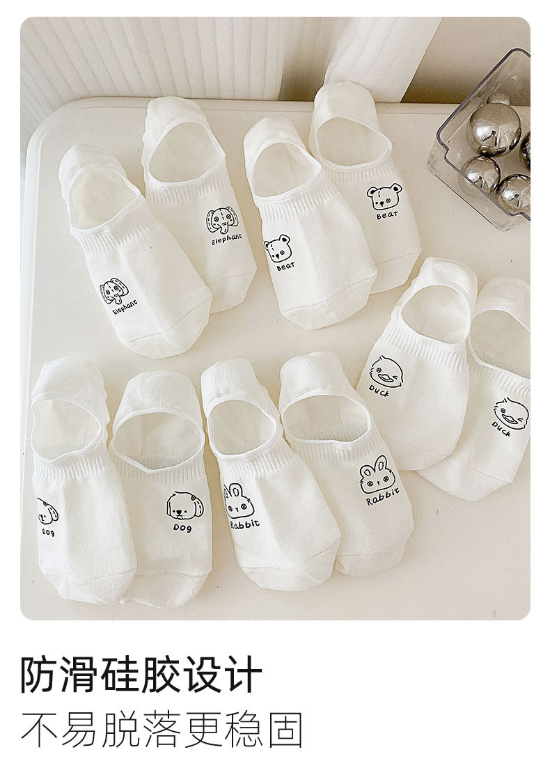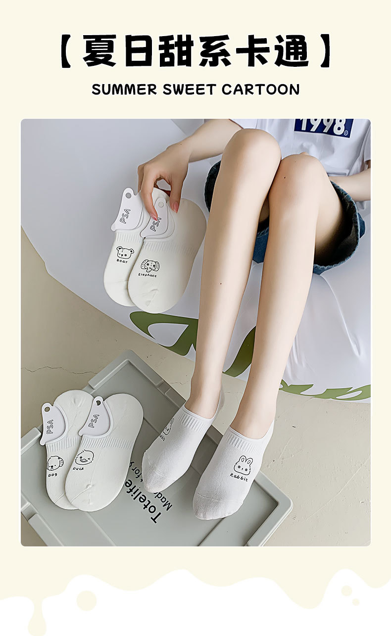 White Low Cut Socks Women's Summer Thin Silicone Non-Slip Tight Invisible Socks Cute Cartoon Japanese Socks Female Cotton Socks