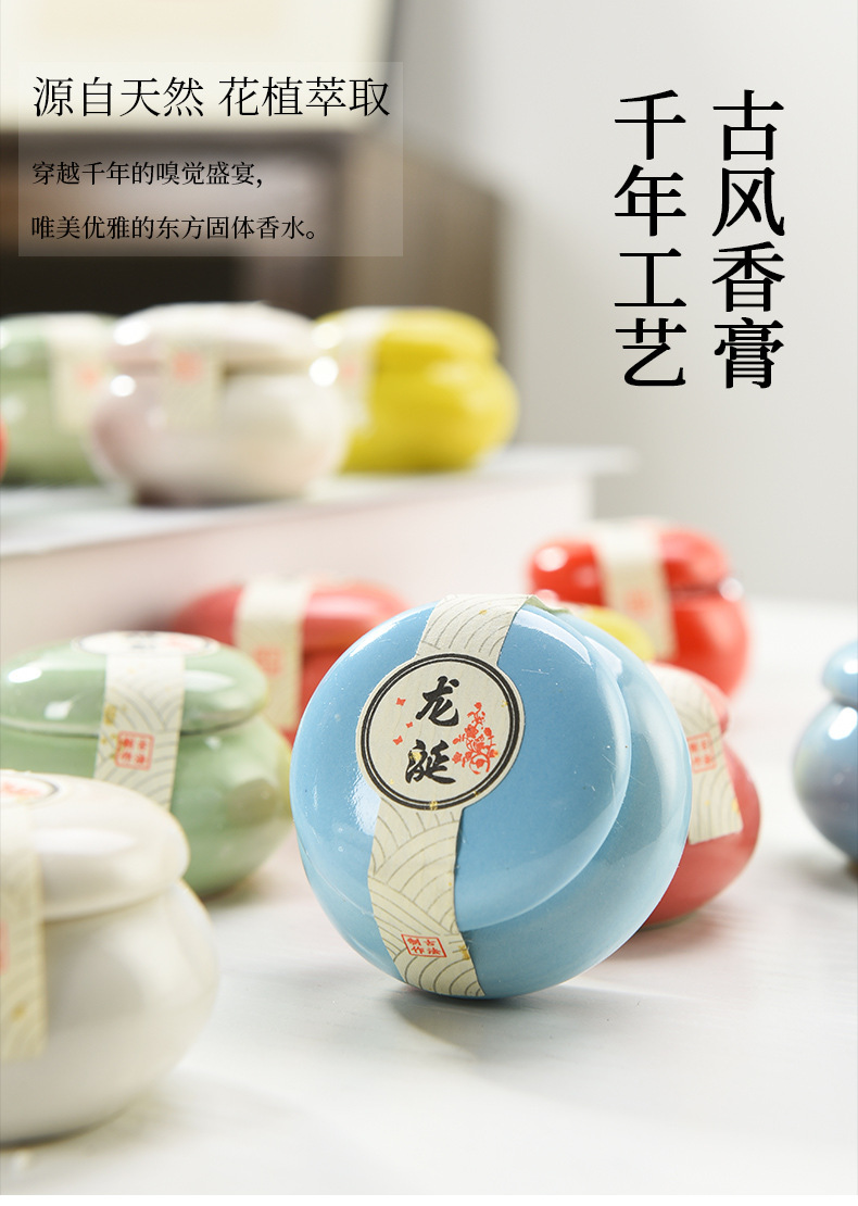 Gufa Solid Balm Students Carry Fragrance Perfume Goose Pear Longxian Ceramic Bottle Aromatherapy Wholesale