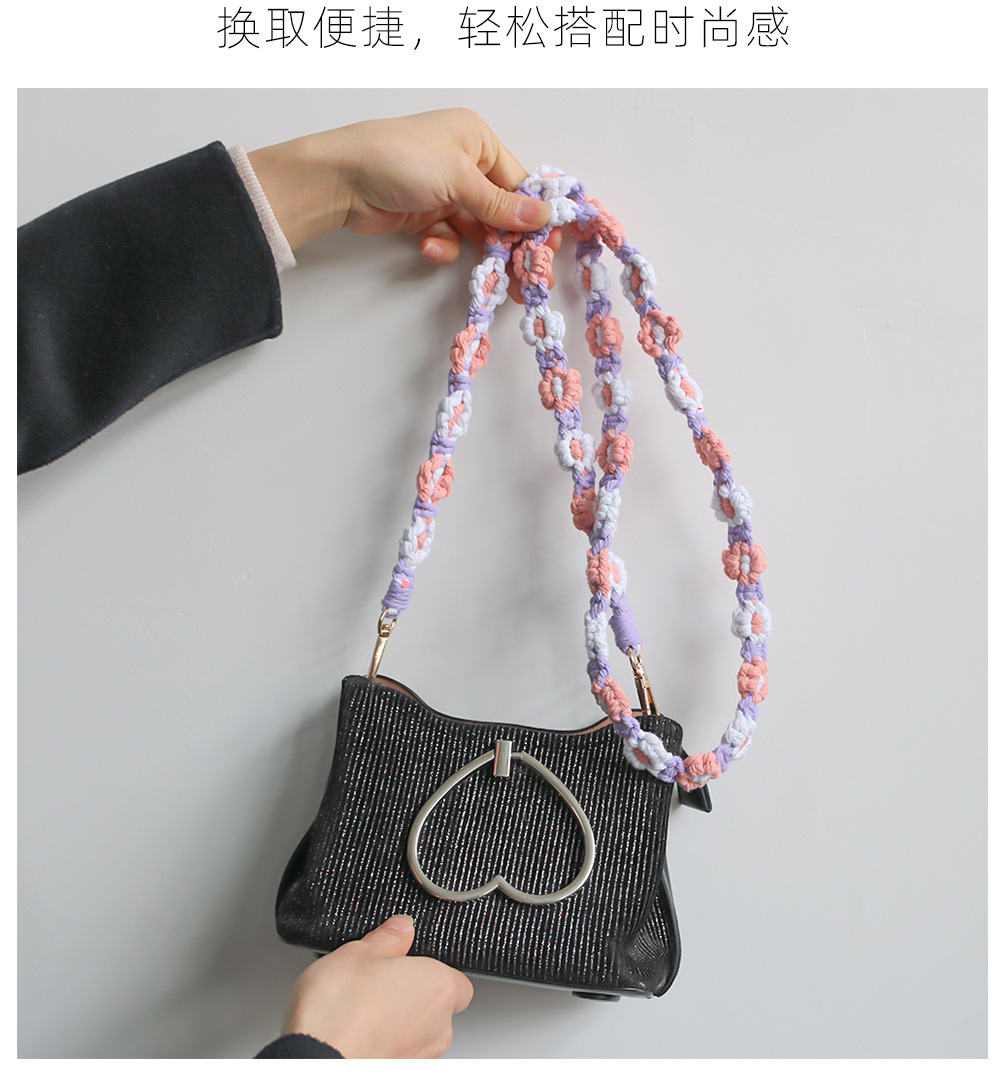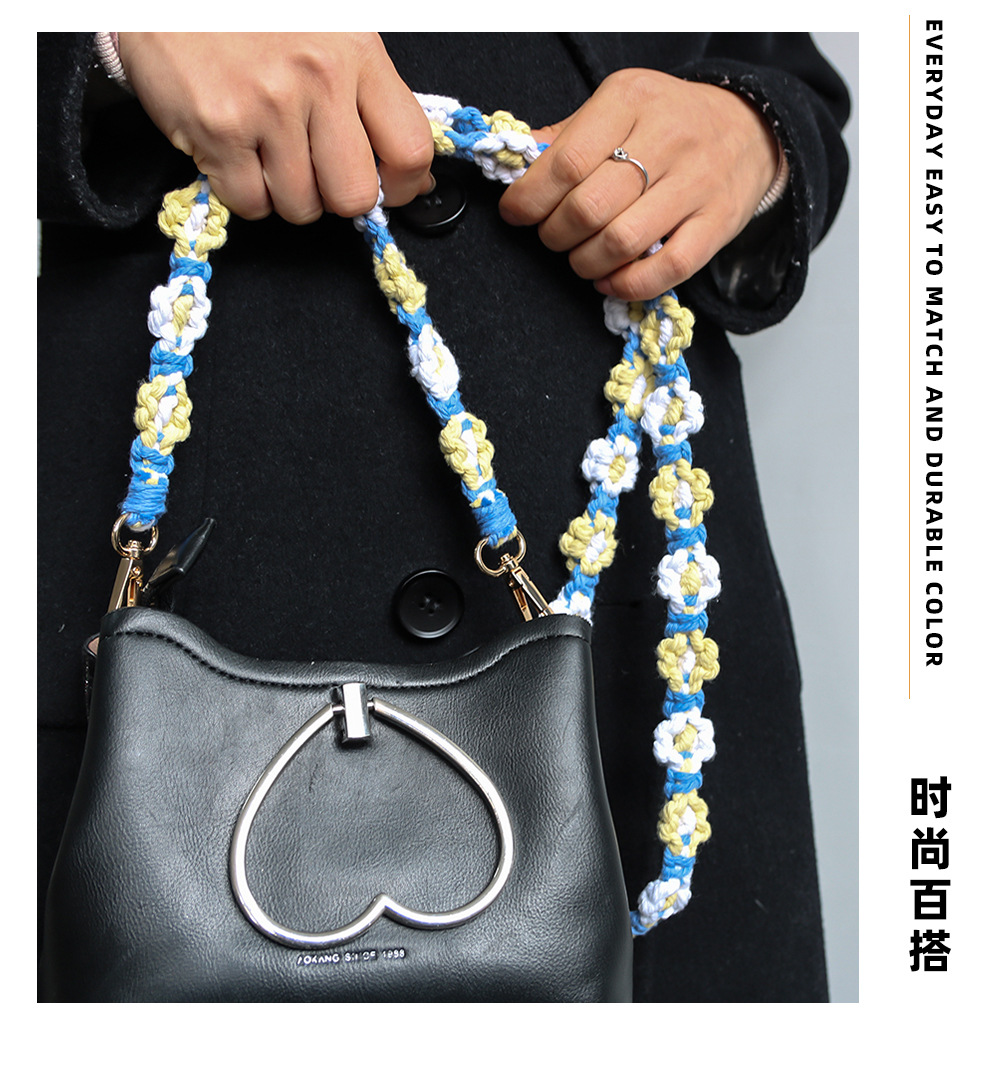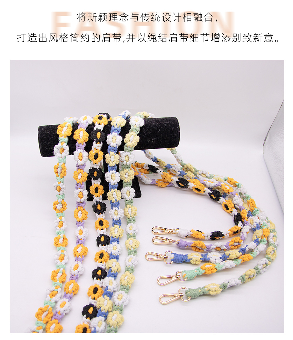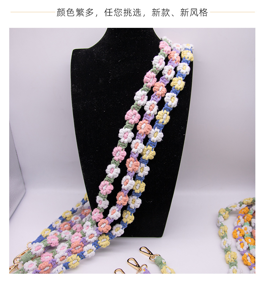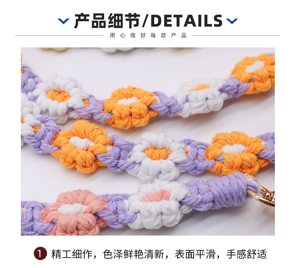 Amazon New Hot Sale Cotton String Woven Mobile Phone Lanyard Bag Lanyard New Flower Woven Keychain Lanyard