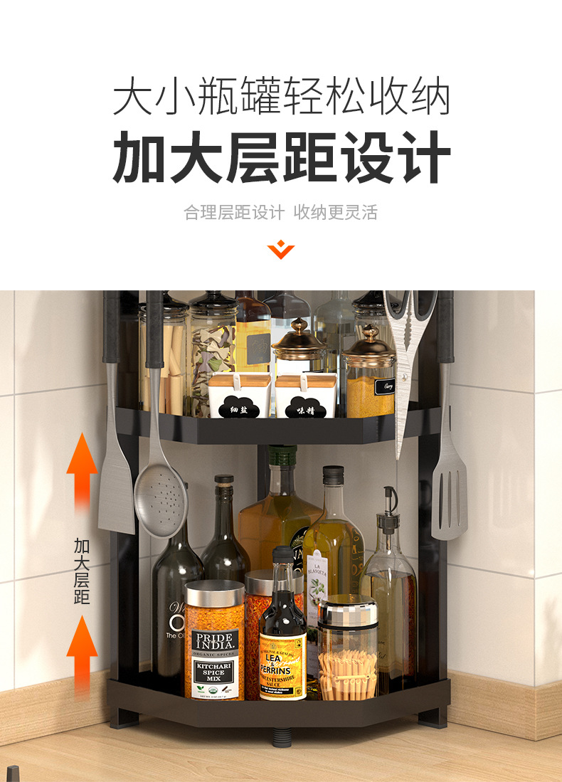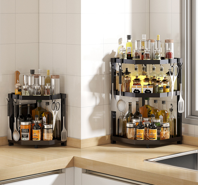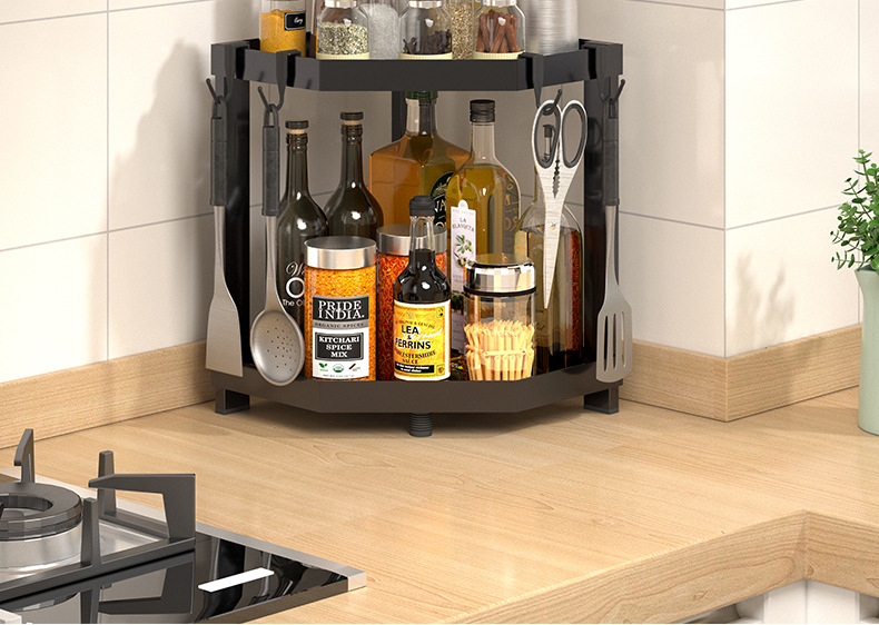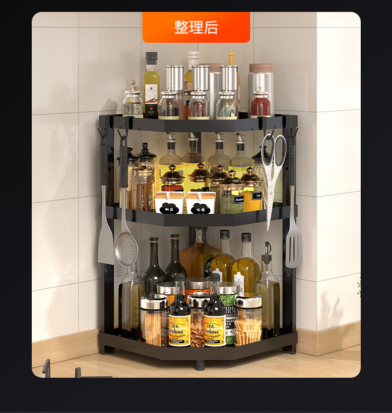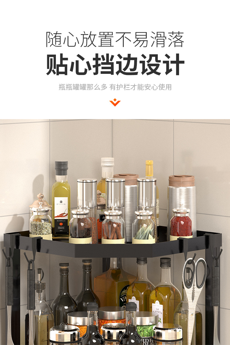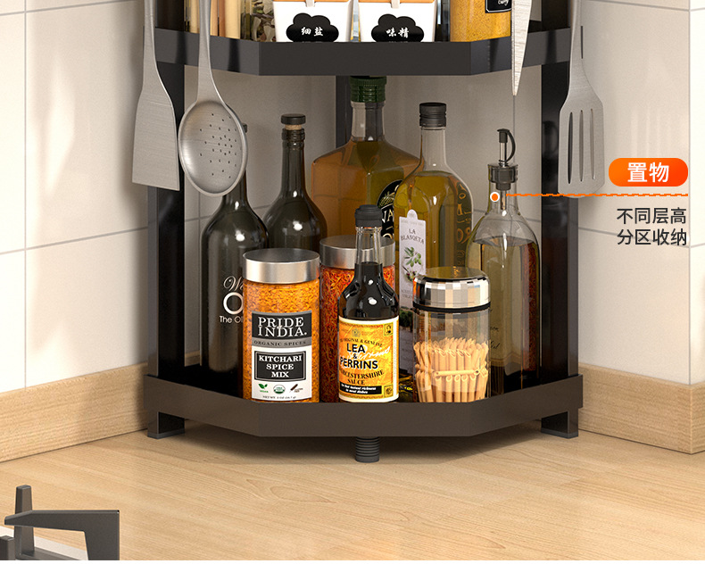 kitchen triangle storage rack countertop multi-layer seasoning oil salt sauce vinegar storage rack corner seasoning rack supplies