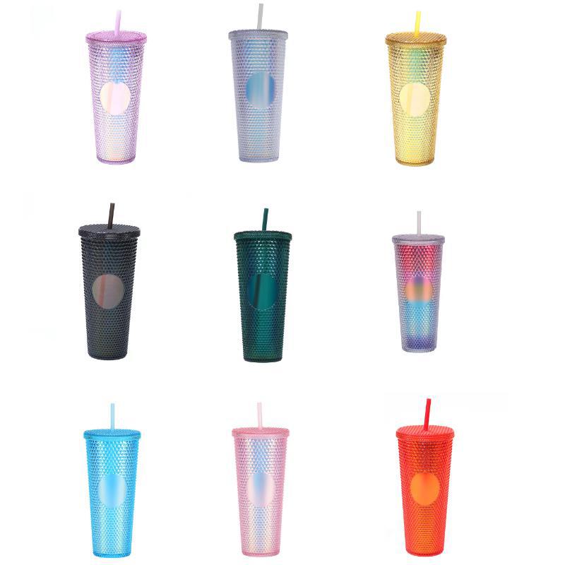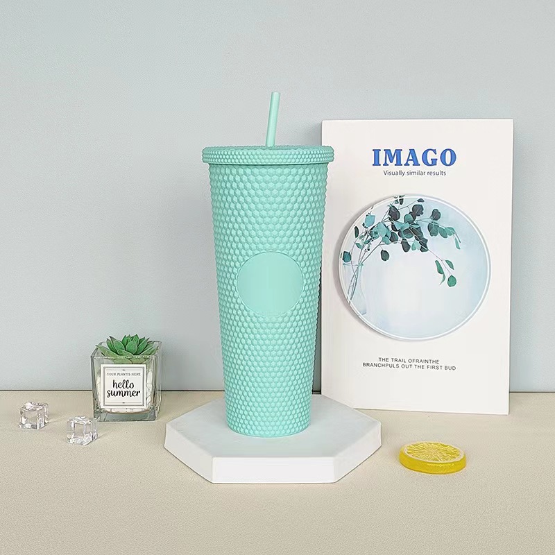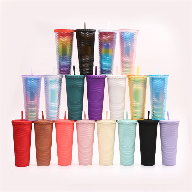 2023 Spot Amazon Double Layer Tumbler Corn Cup Plastic Cup Cup with Straw Water Cup Asterisk Durian Cup