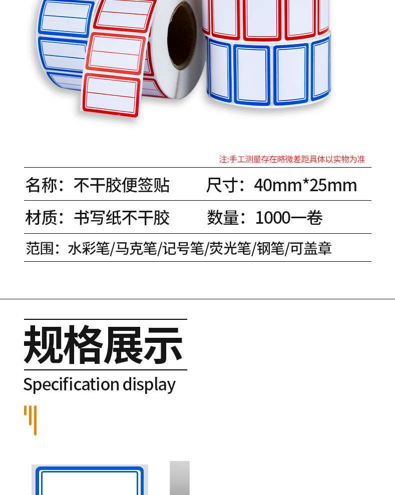 Self-Adhesive Index Paper Label Roll Reusable Adhesive Sticker Classified Stickers Self-Adhesive Name Tape Sticky Note