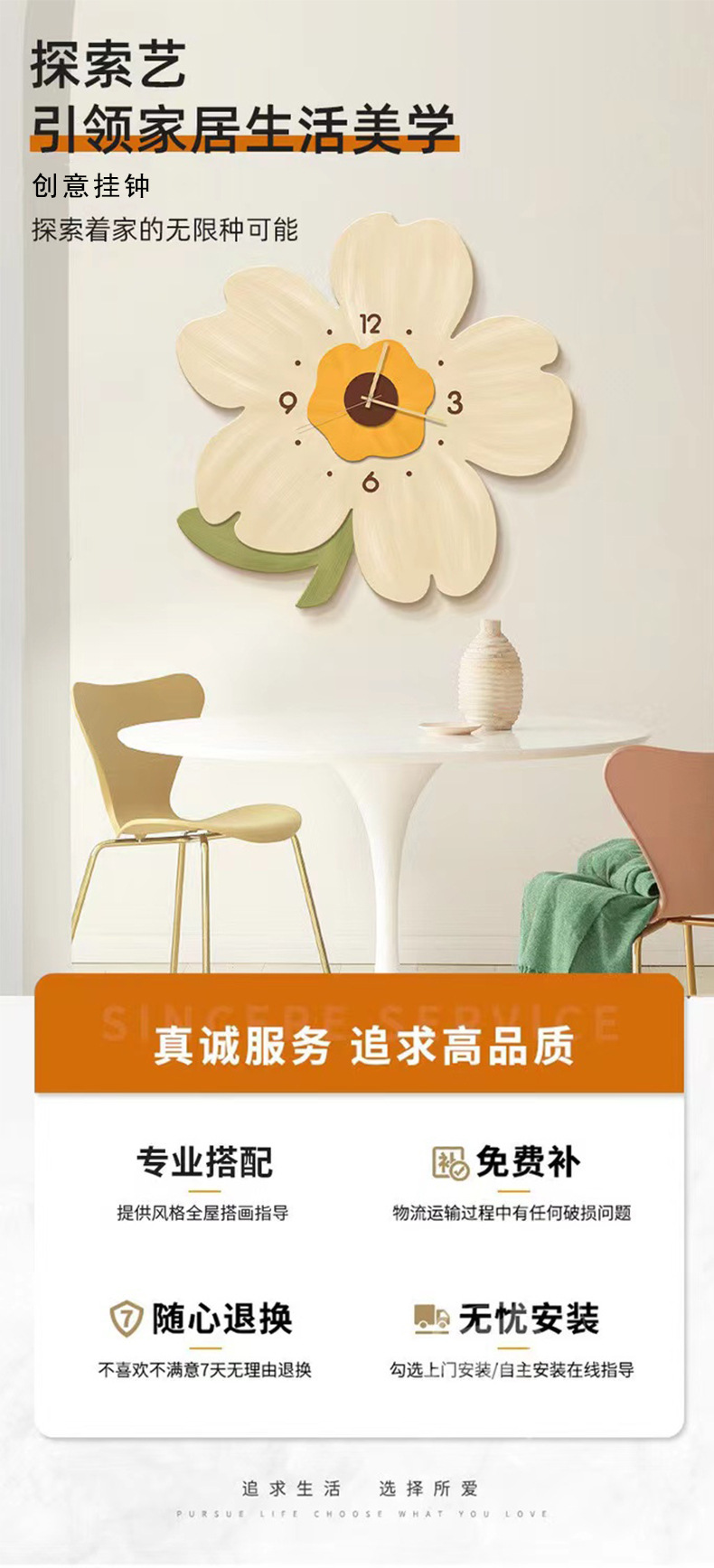 2023 New Restaurant Clock Wall Clock Living Room Home Modern Minimalist Creative Fashion Noiseless Clock Wall-Mounted Elegant