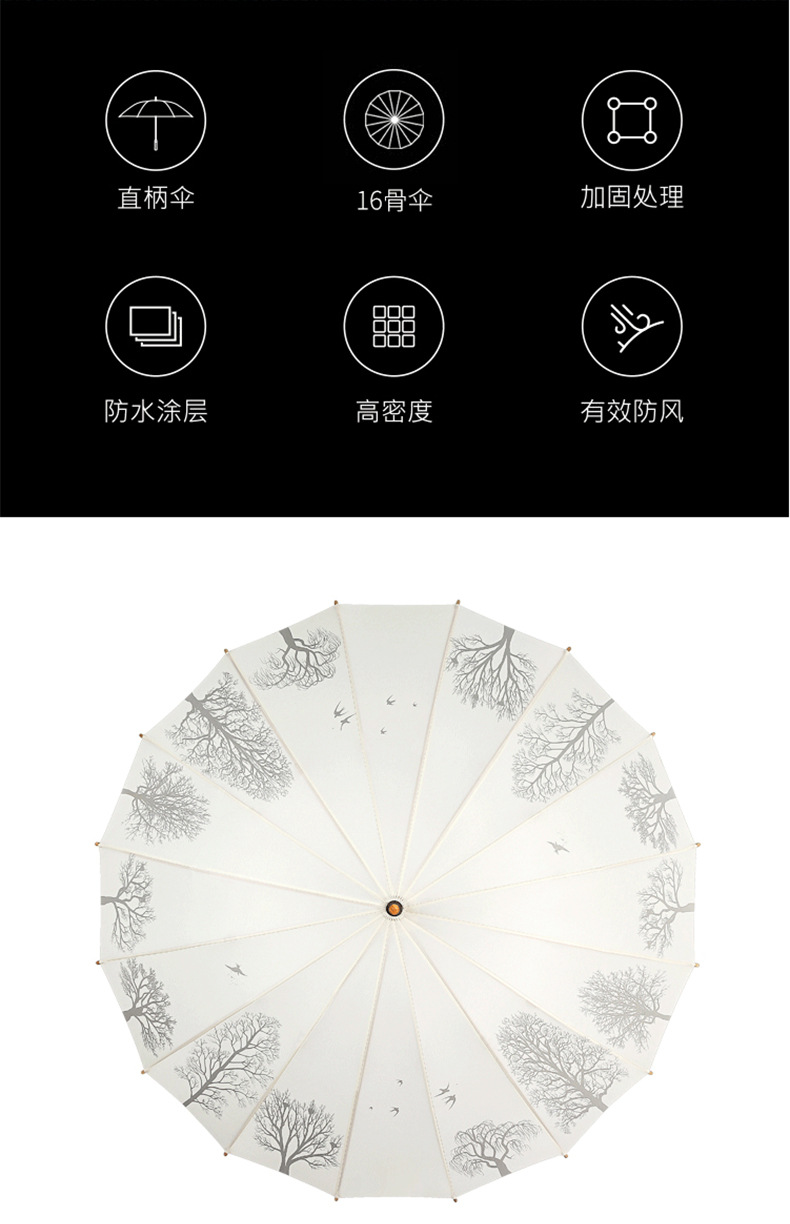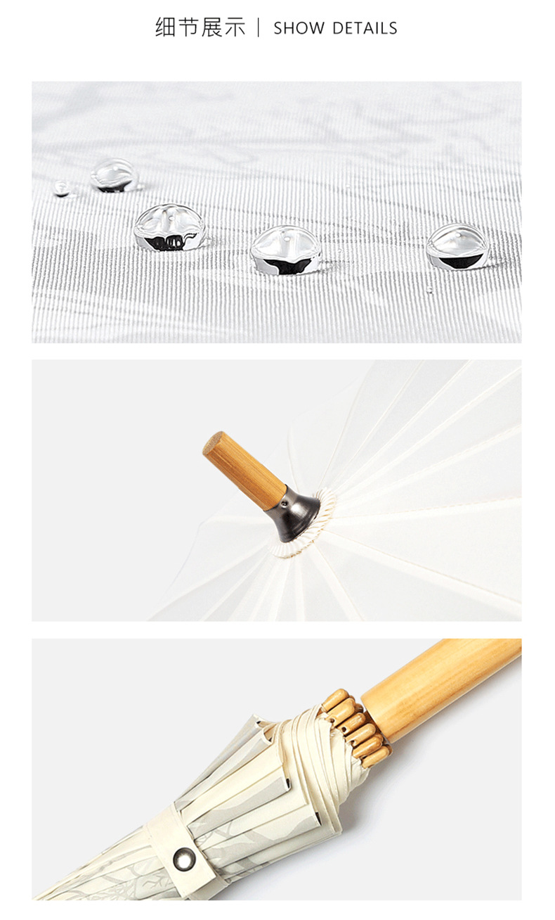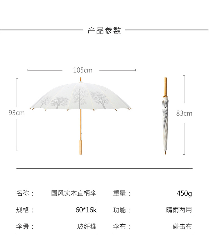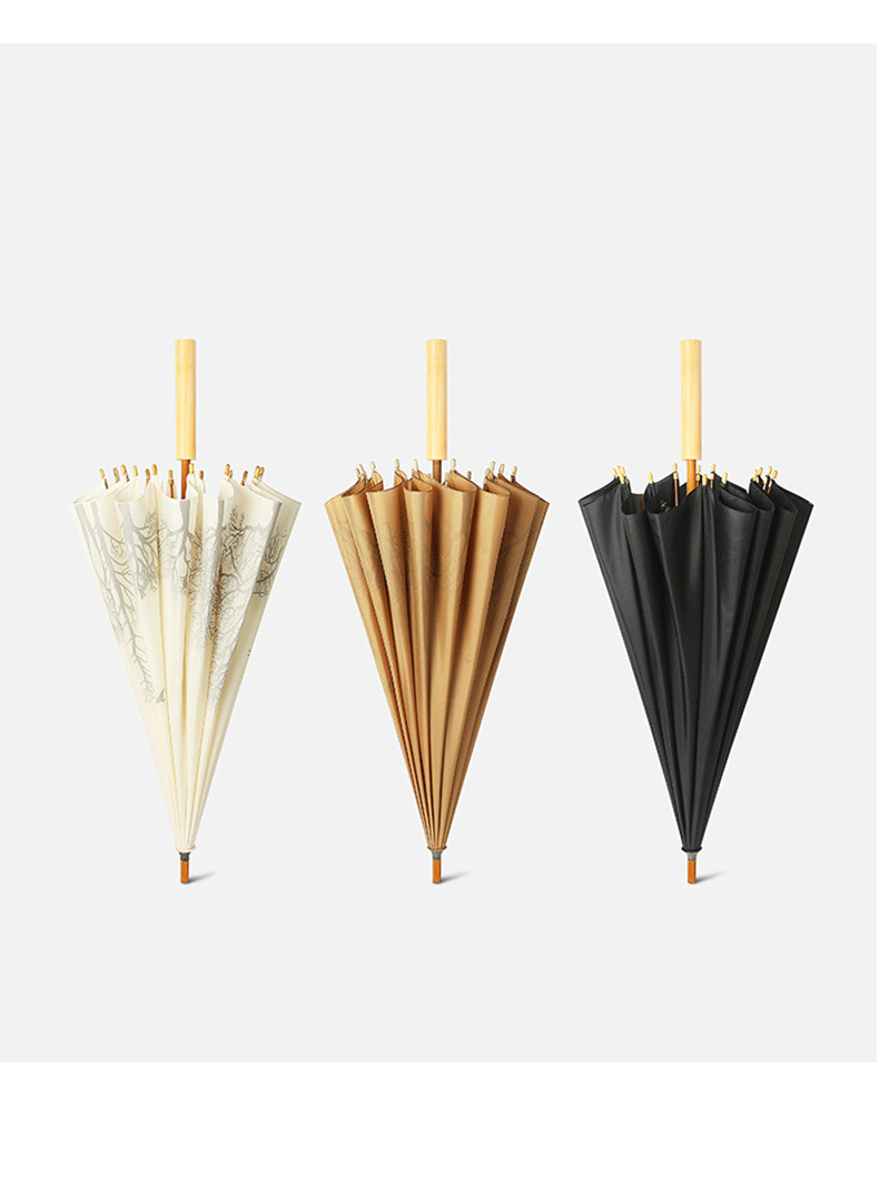 Guofeng Retro All-Weather Umbrella Manufacturers Supply Solid Wood Long Handle Umbrella Ultra-Light 16-Bone Manual Business Gifts Straight Umbrella