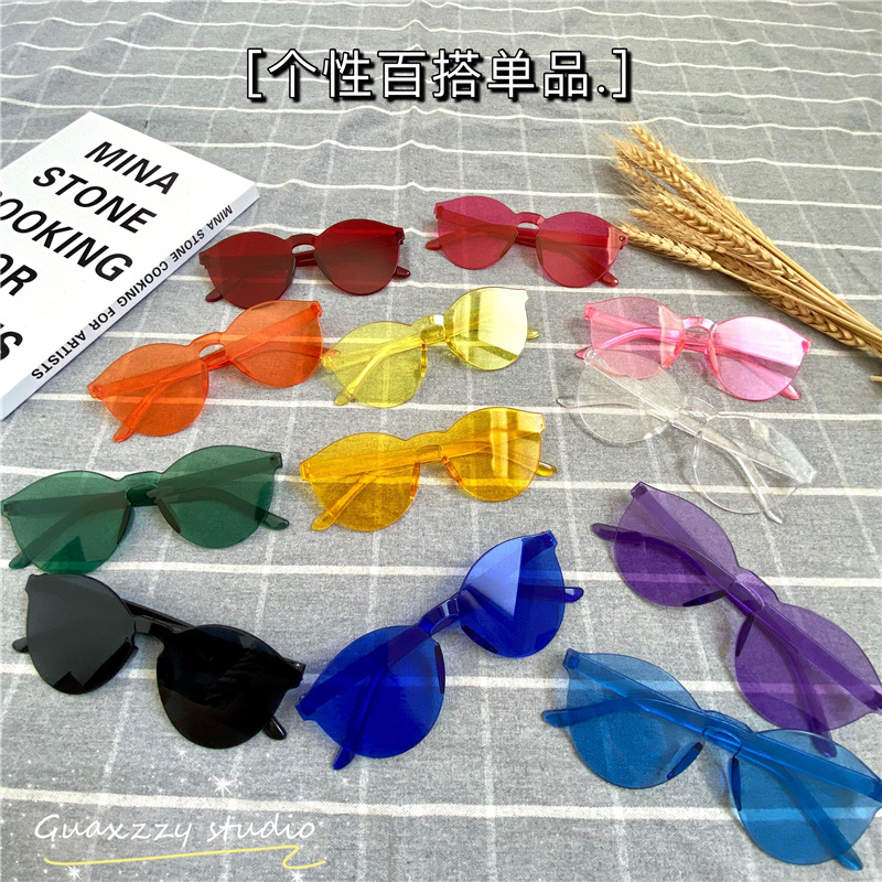 Colorful Birthday Party Photo Female Friends Sisters Sun-Proof Sun Glasses Candy Color Parent-Child Children Concave Sunglasses