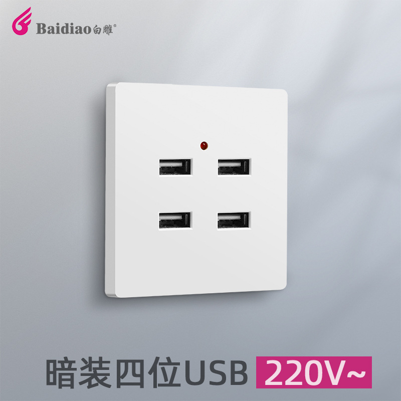86-Type Open-Mounted Two Three Four-Hole USB Mobile Phone Charging Two 4-Bit 220V to 5V Construction Site 36vusb Socket Panel