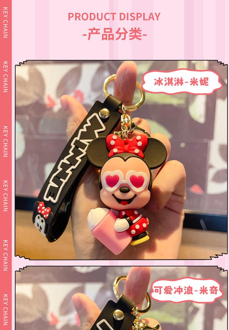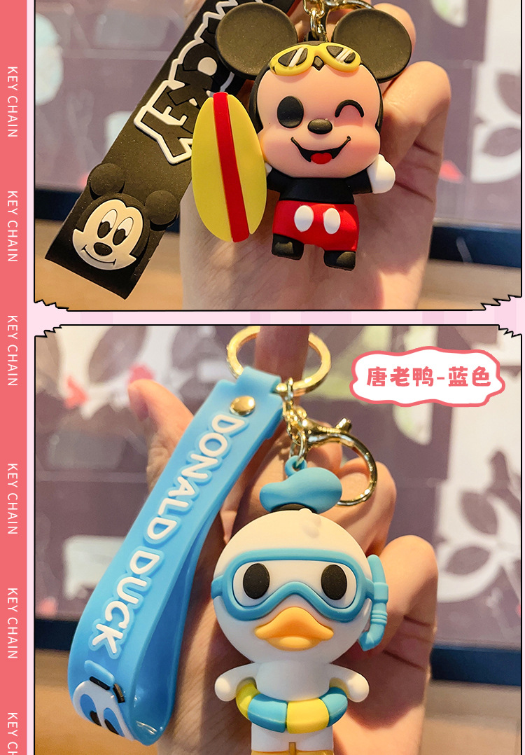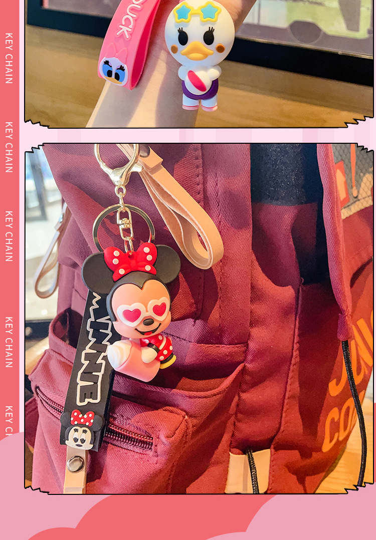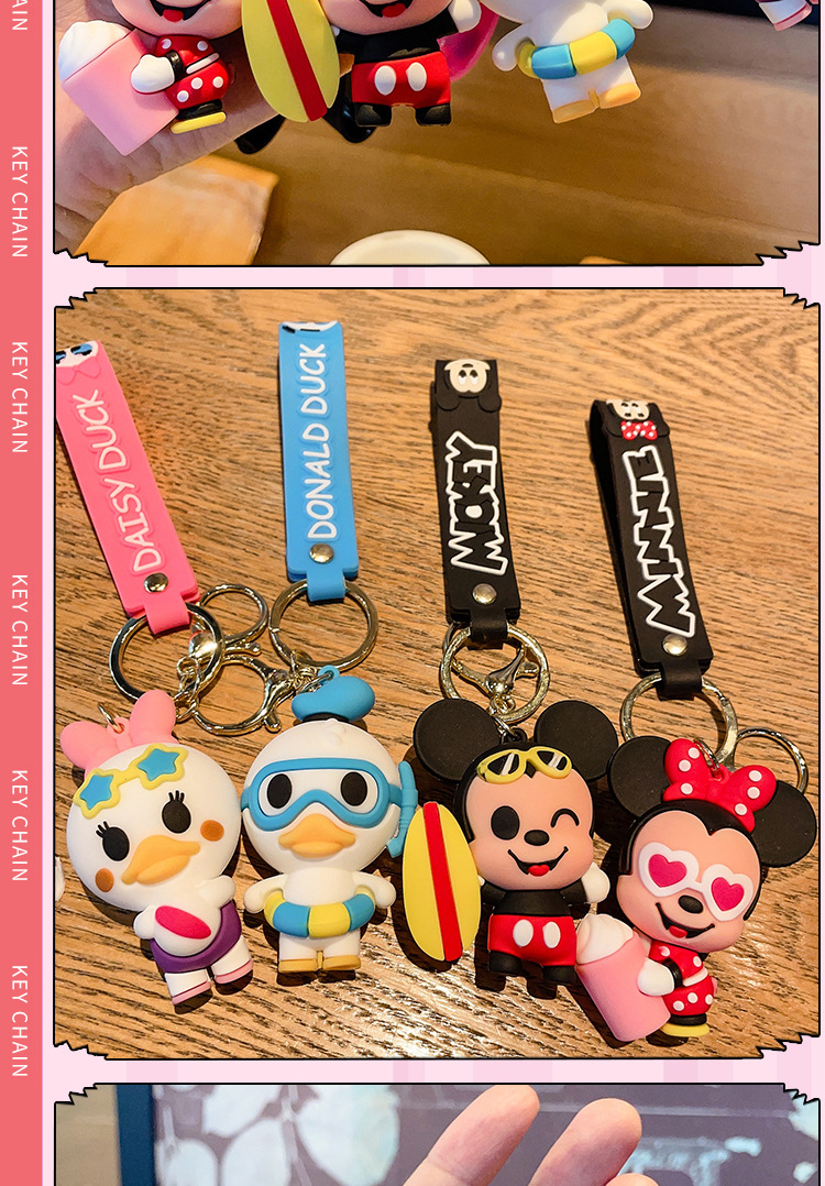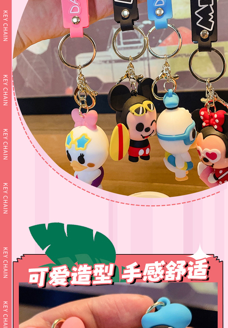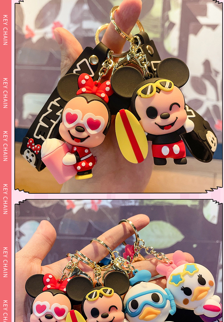 cute mickey minnie summer travel series keychain cartoon pvc doll bag package pendant car key ring