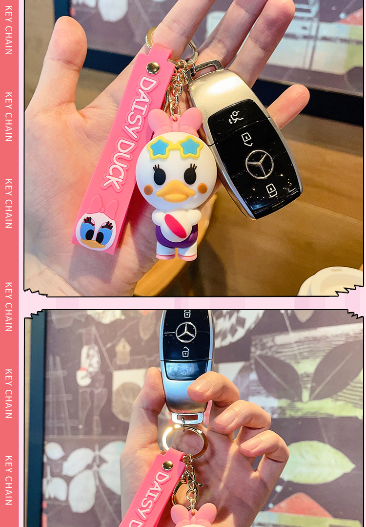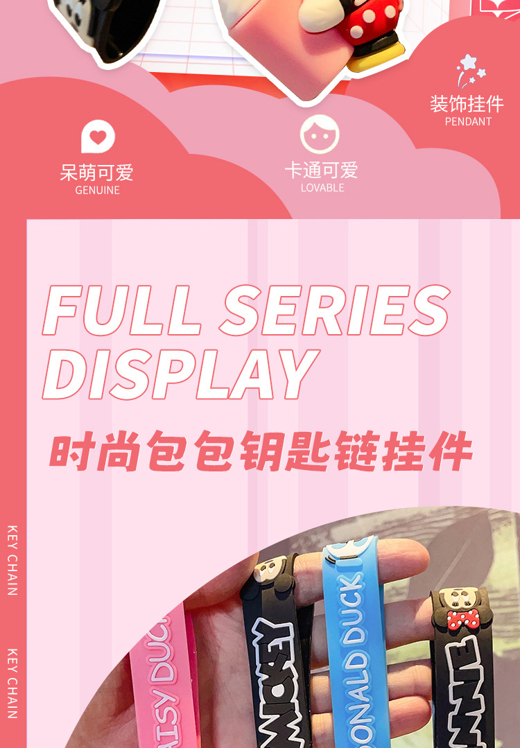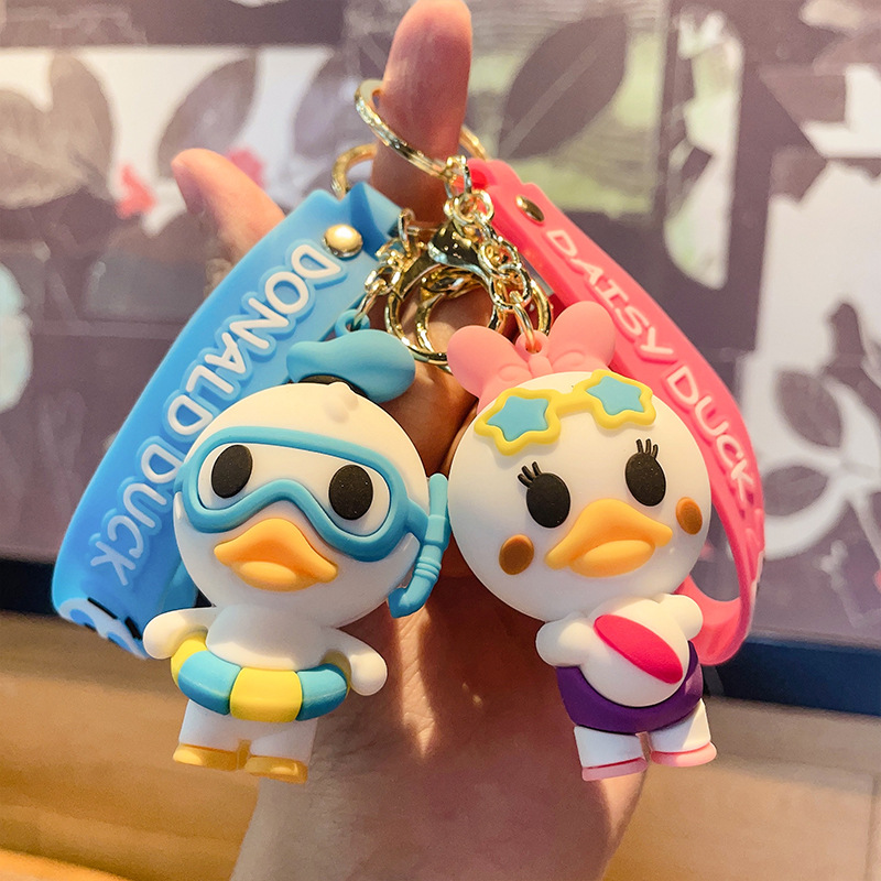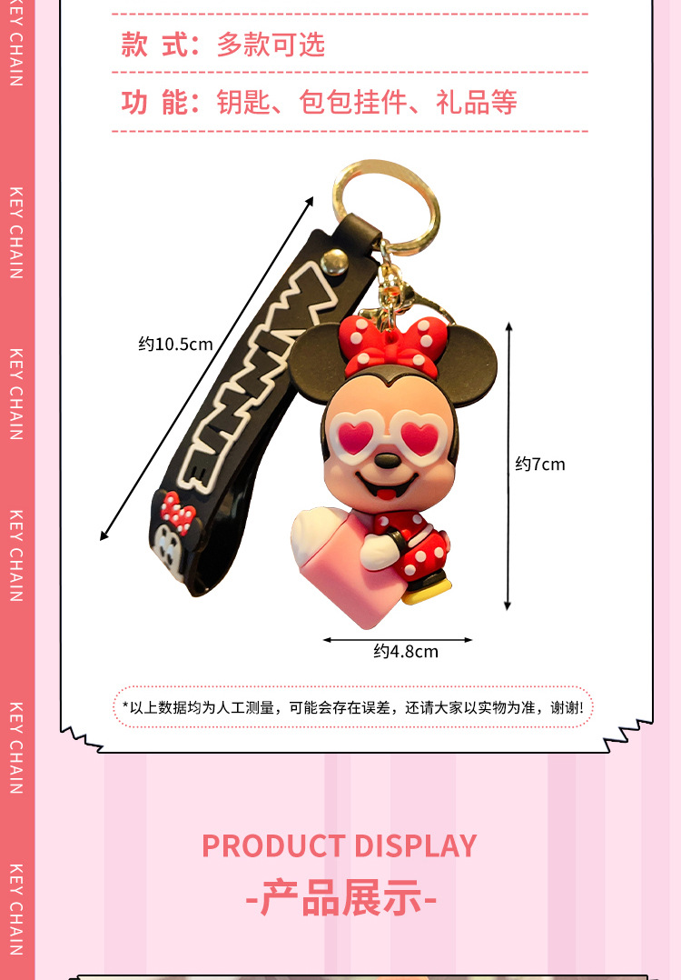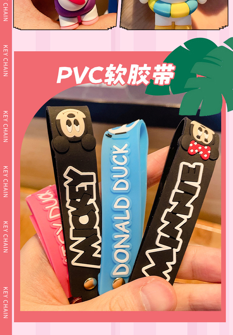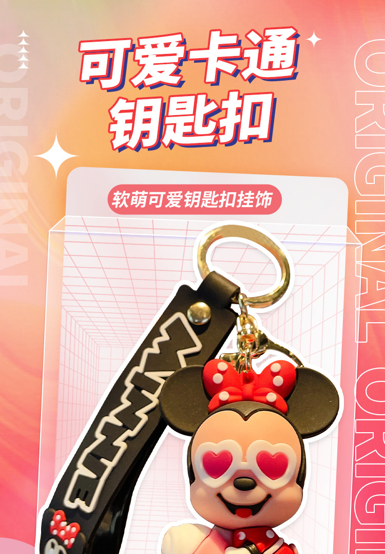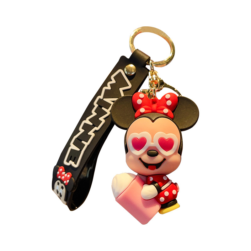 cute mickey minnie summer travel series keychain cartoon pvc doll bag package pendant car key ring
