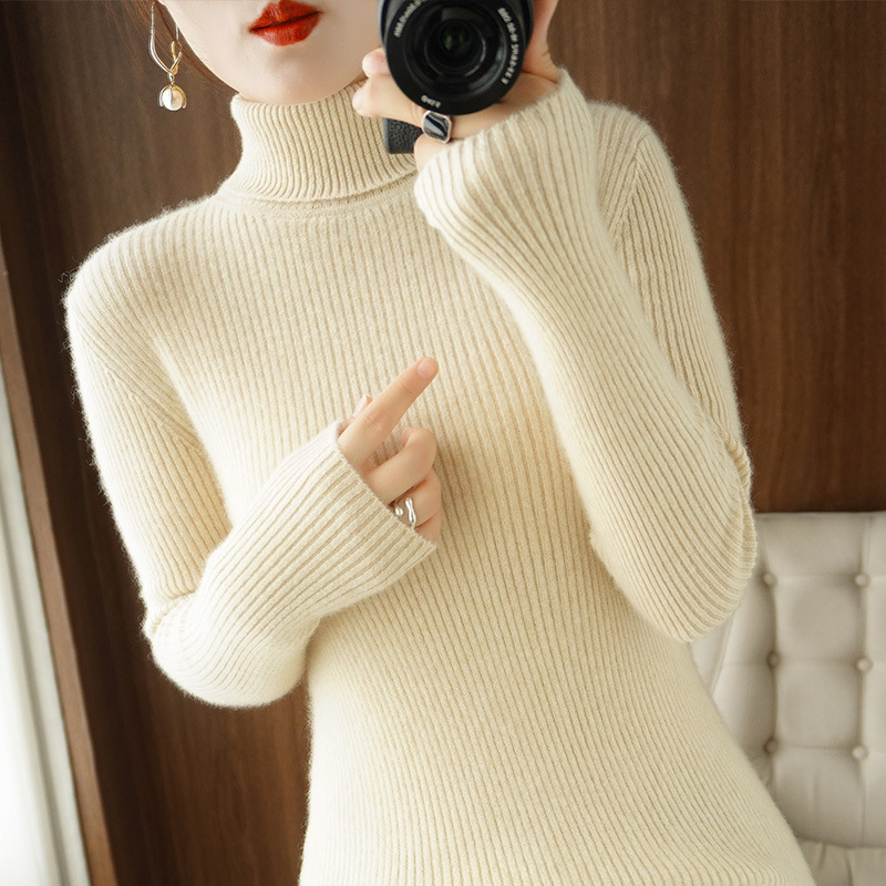 Autumn New Sunken Stripe Red Sweater Women's Pile Collar Thermal Head Cover Sweater Turtleneck Slim Bottoming Shirt Women's