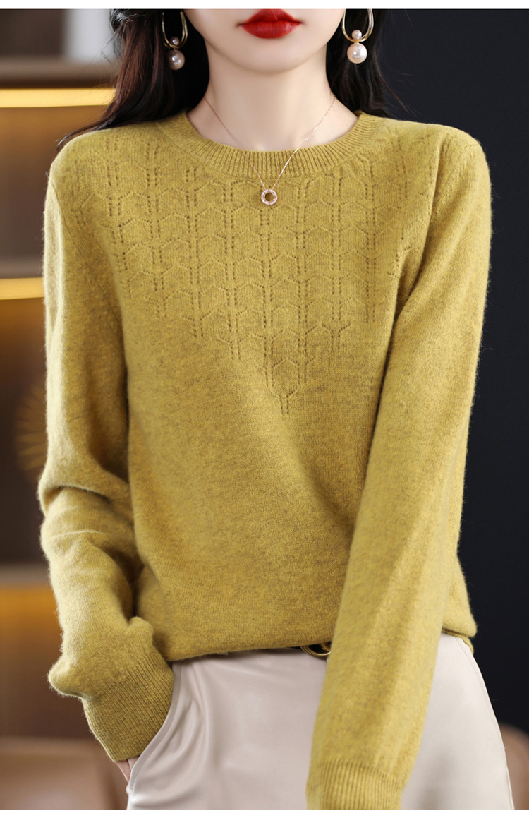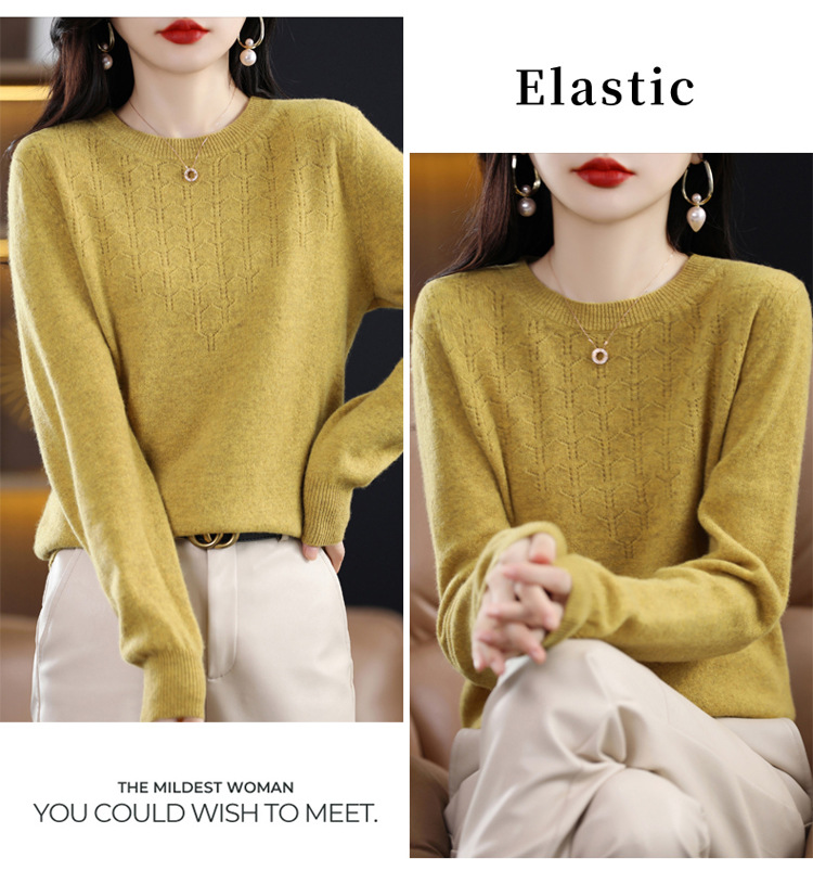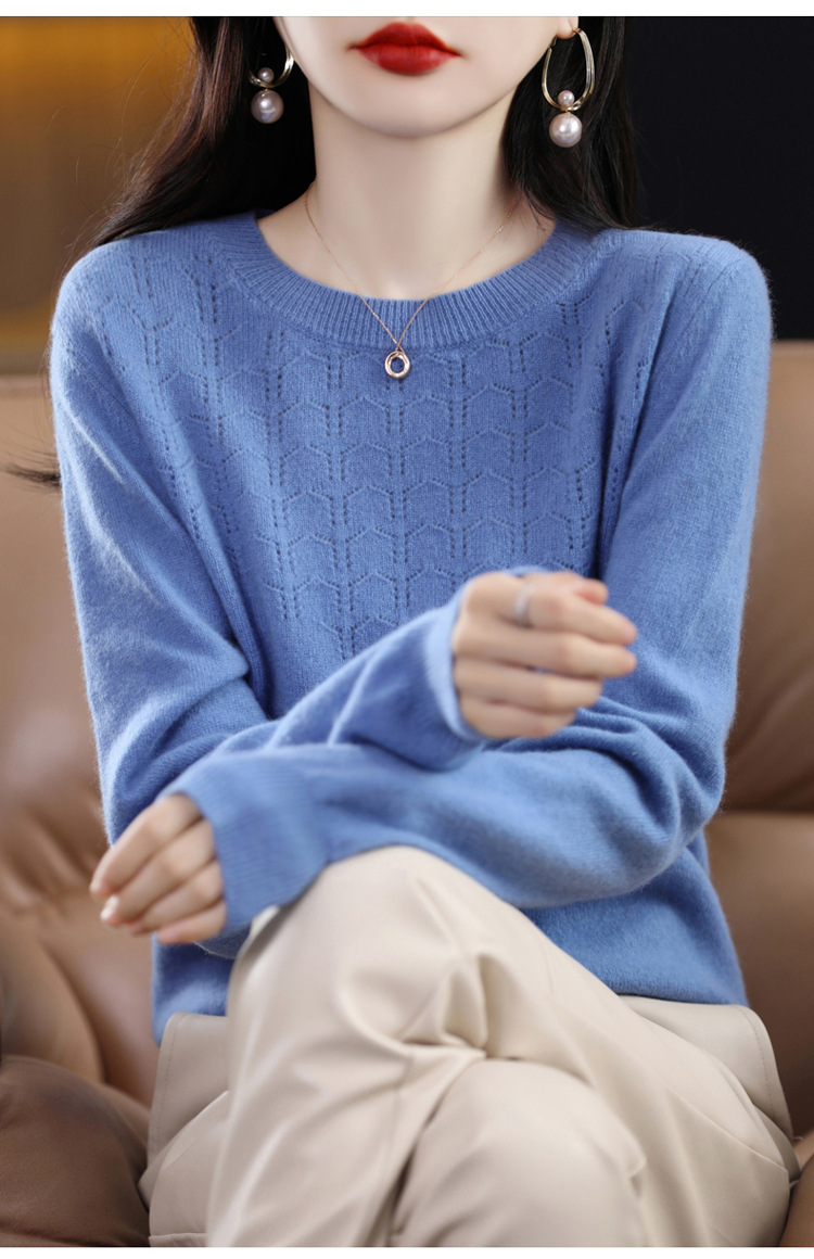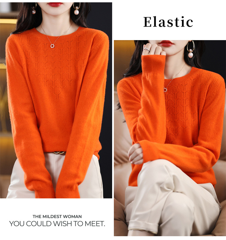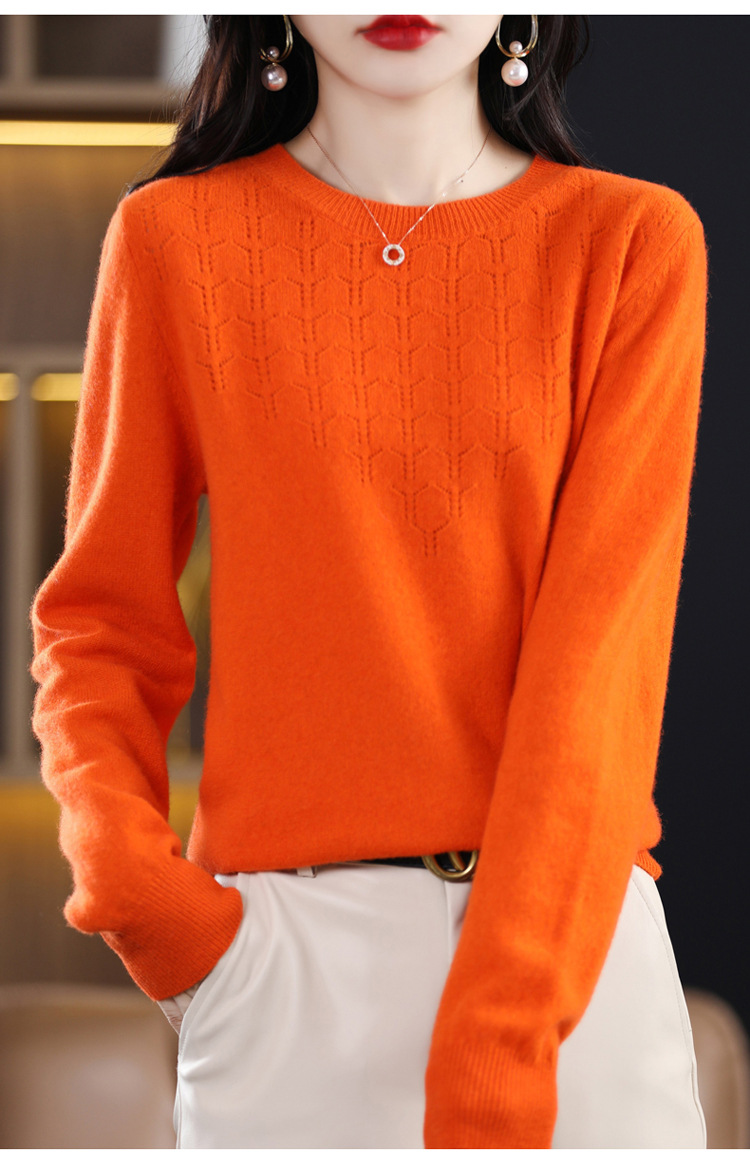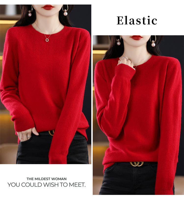 Rabbit Autumn Red Thin Hollow round Neck Bottoming Shirt Pullover Women's Long Sleeve Loose Inner Wear Sweater
