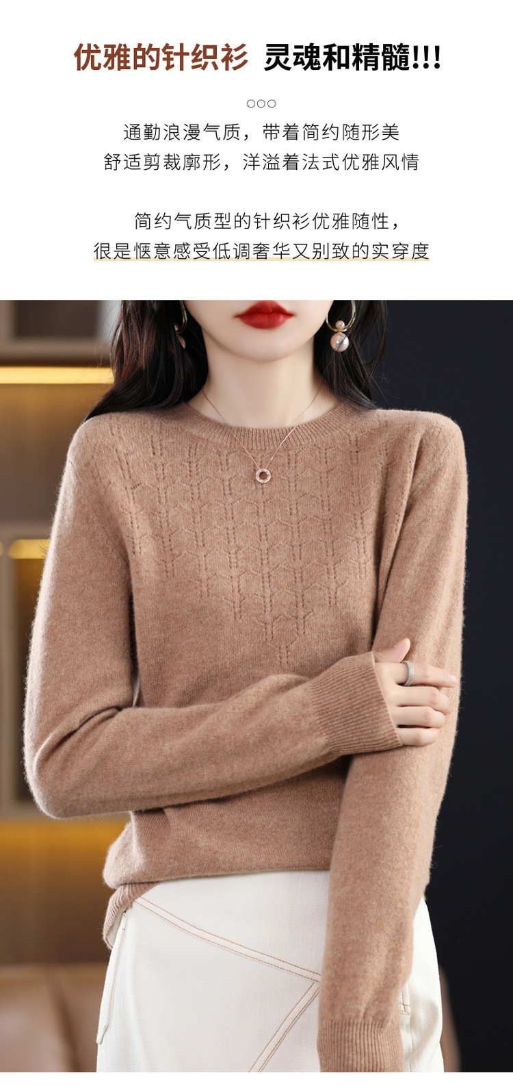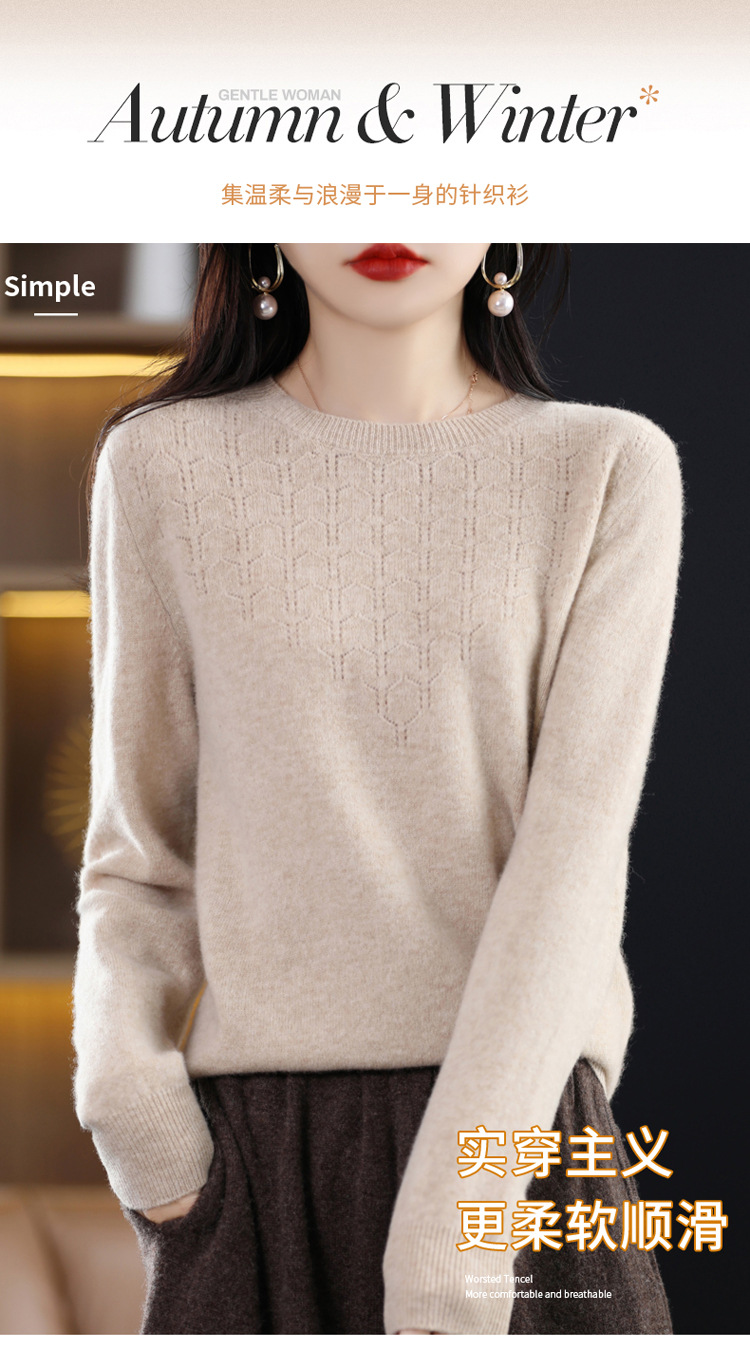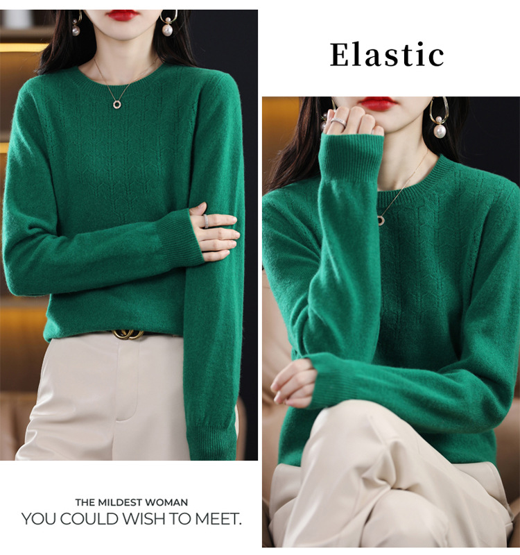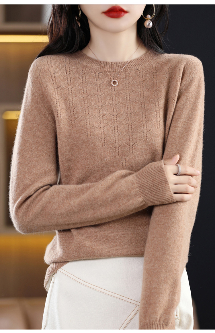 Rabbit Autumn Red Thin Hollow round Neck Bottoming Shirt Pullover Women's Long Sleeve Loose Inner Wear Sweater