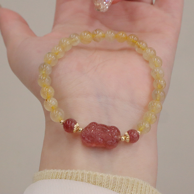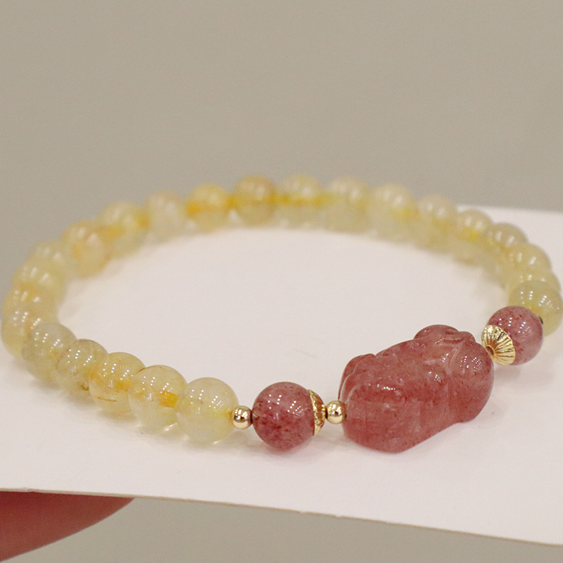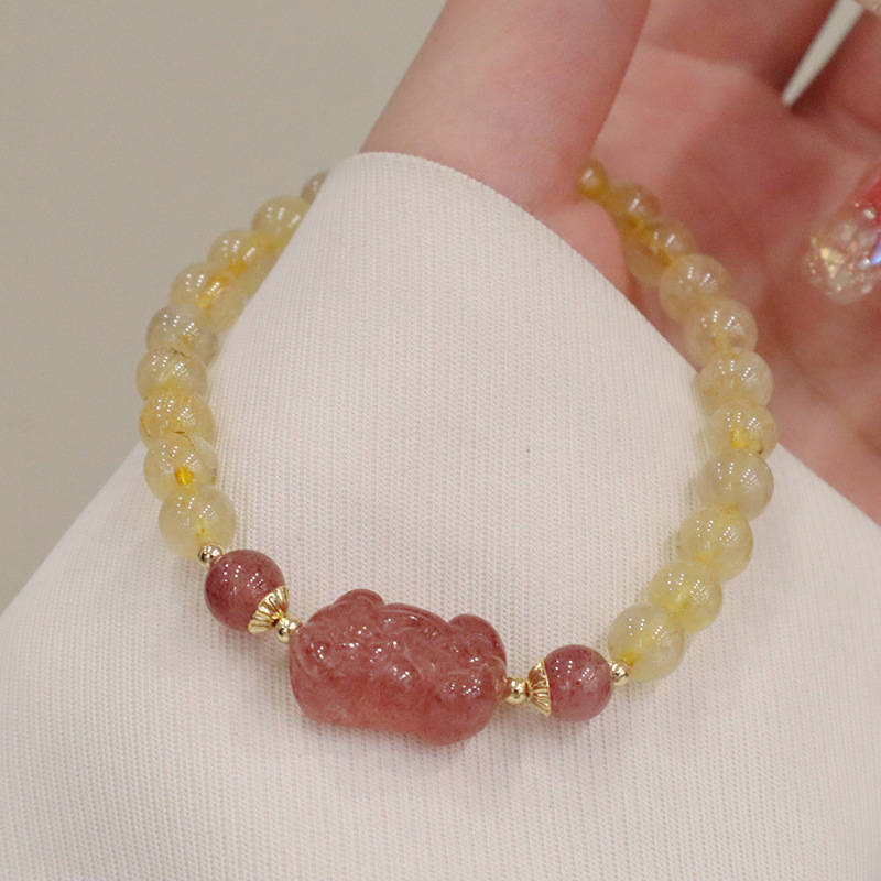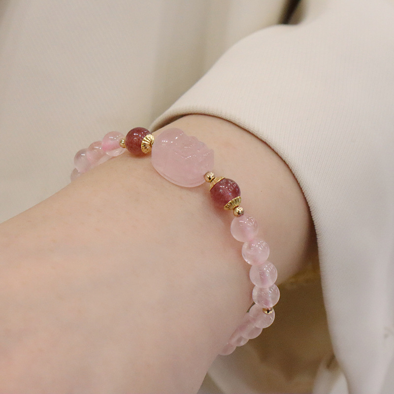 natural pink crystal strawberry quartz pi xiu bracelet