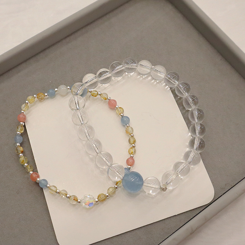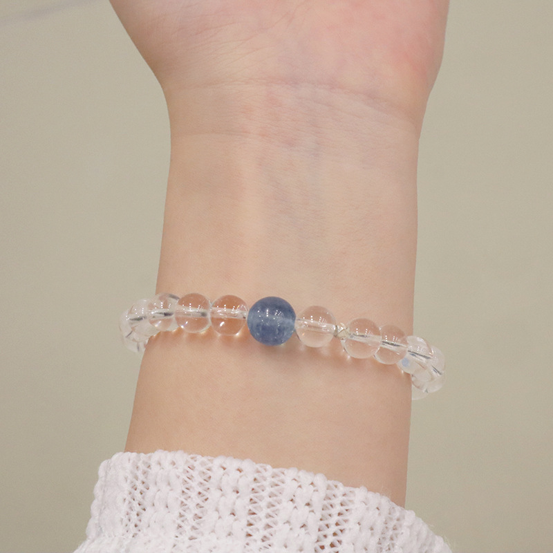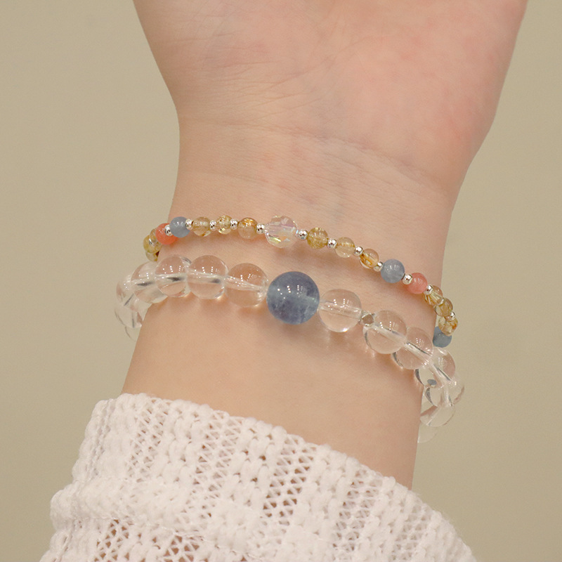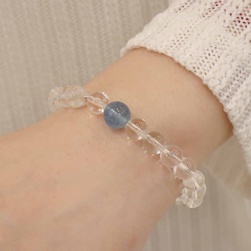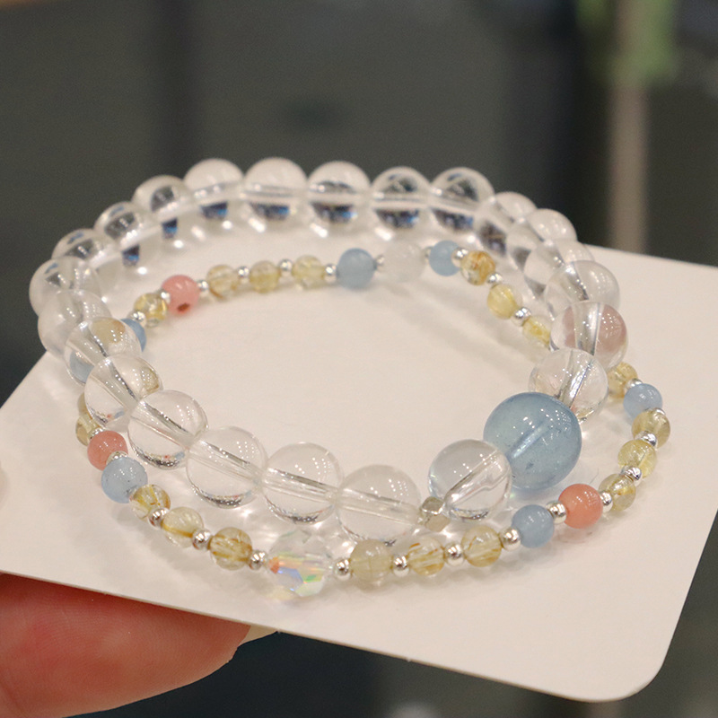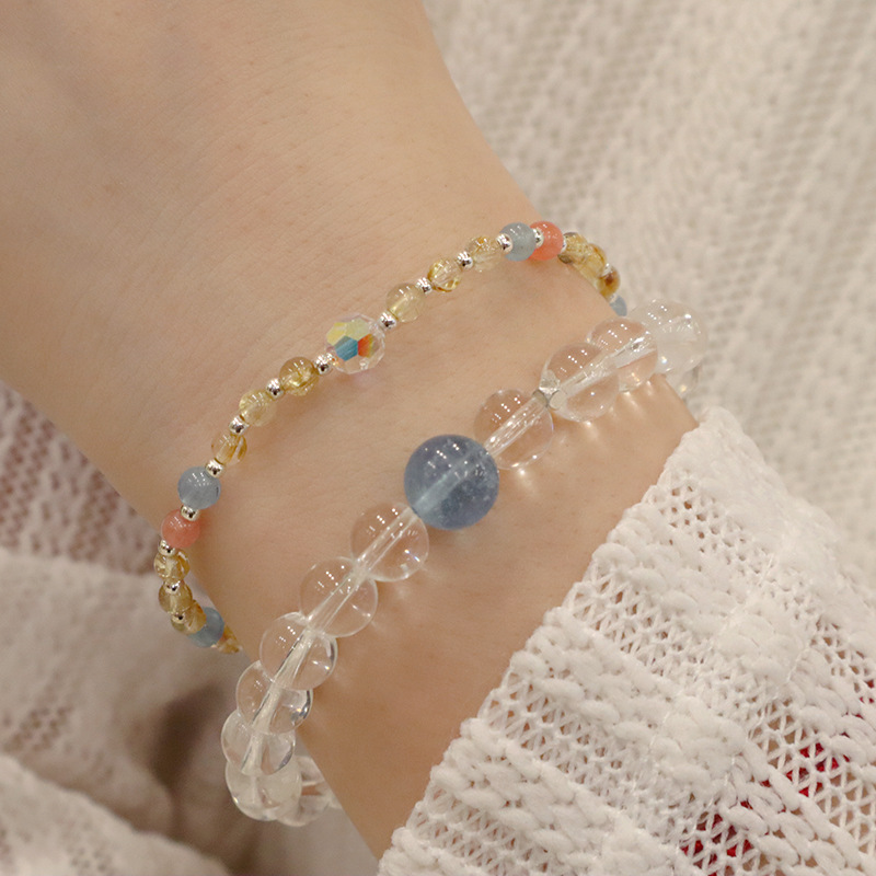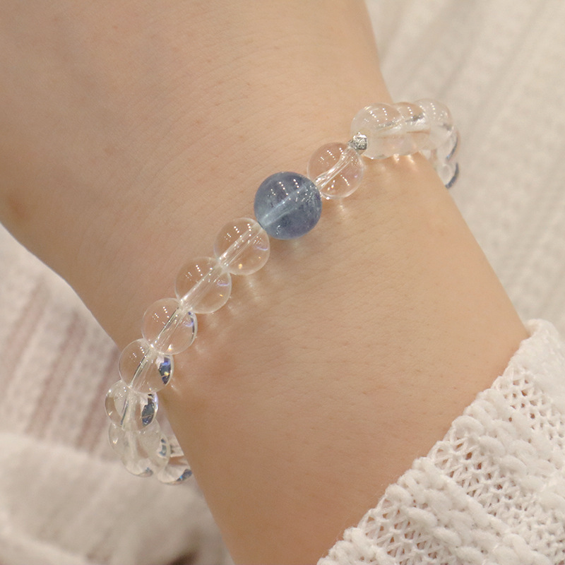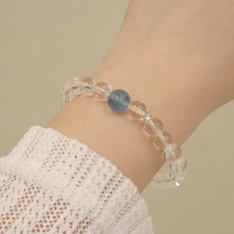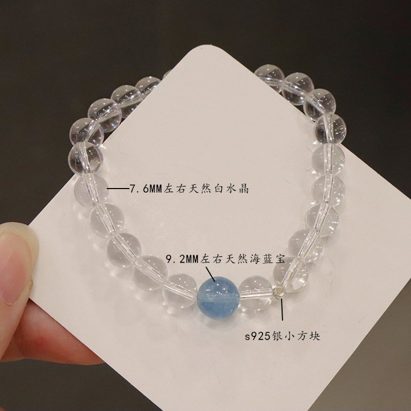 natural white crystal aquamarine silver bracelet
