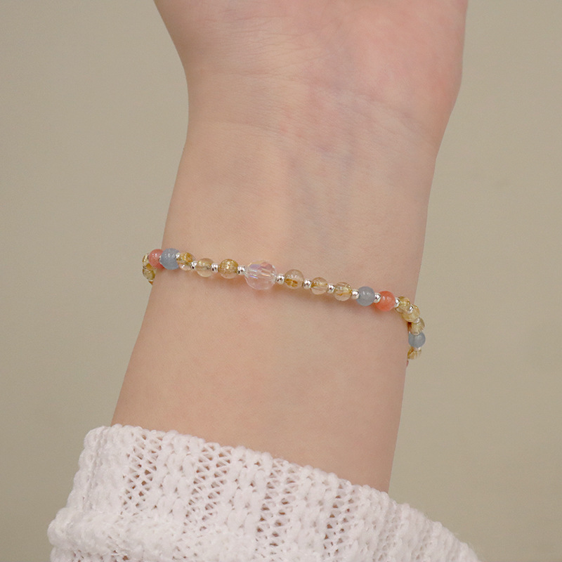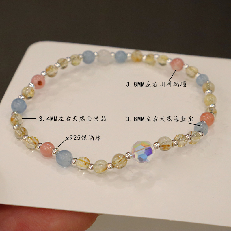 natural gold rutilated quartz aquamarine silver bracelet