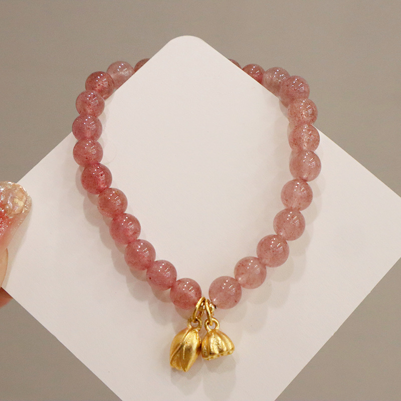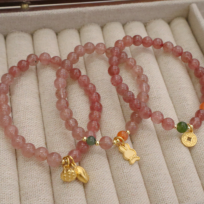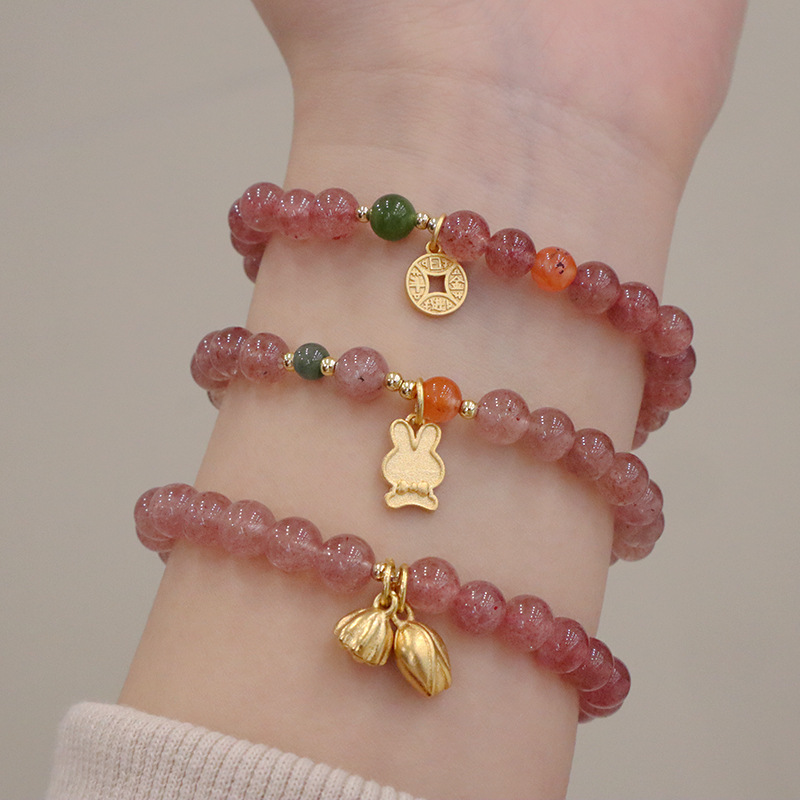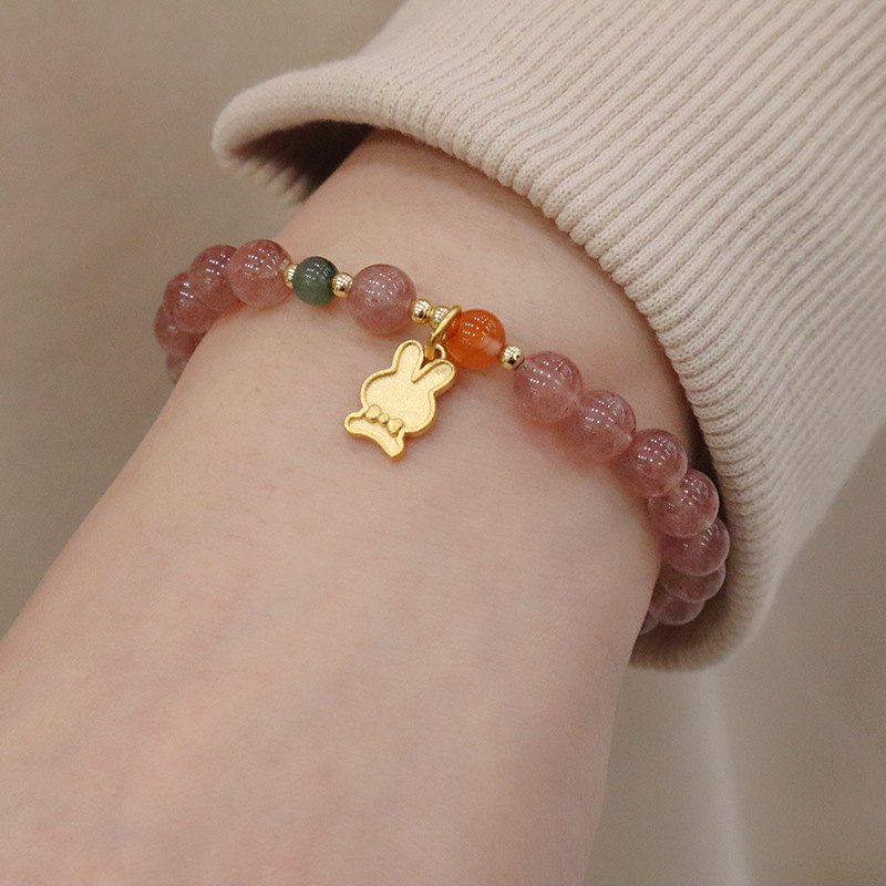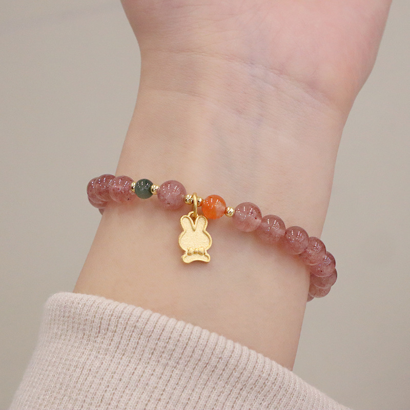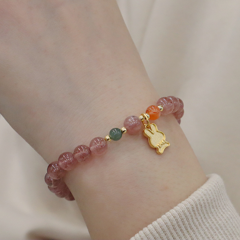 natural strawberry quartz metal rabbit bracelet