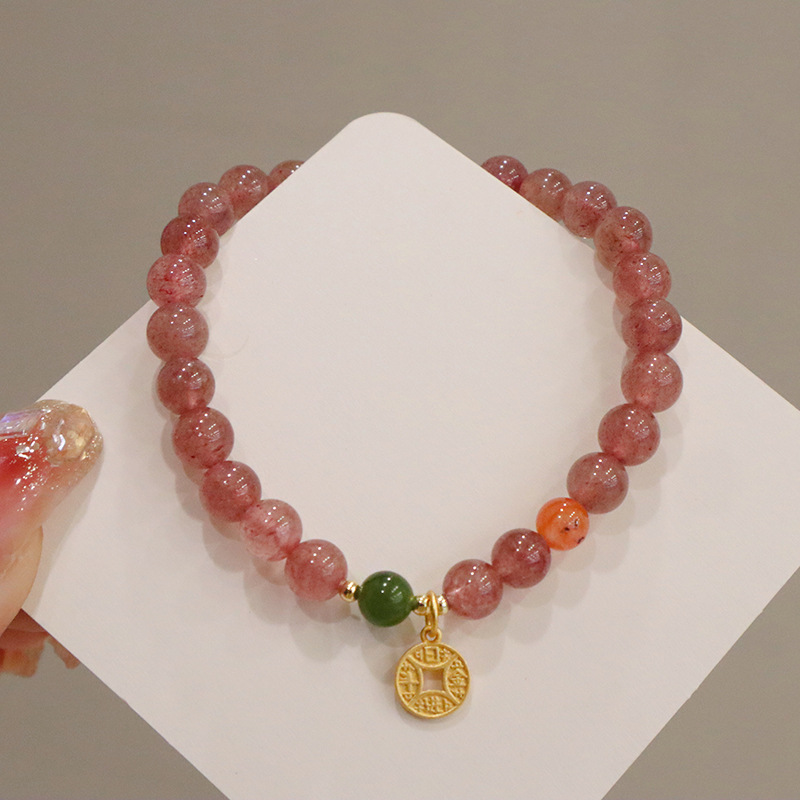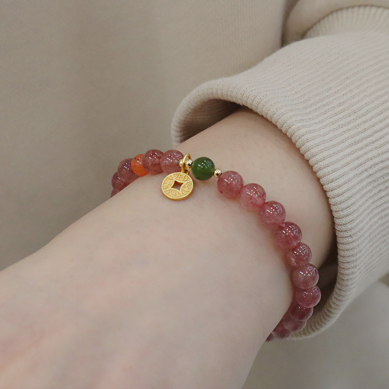 natural strawberry quartz coin bracelet